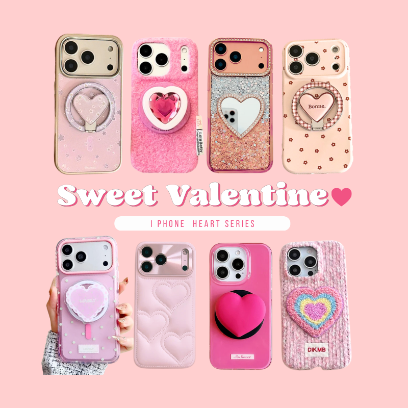 【ハート総柄】ハンドルストラップ付き ポップデザイン スマホケース|iPhone対応 #260203