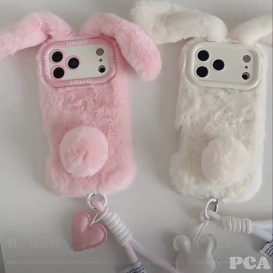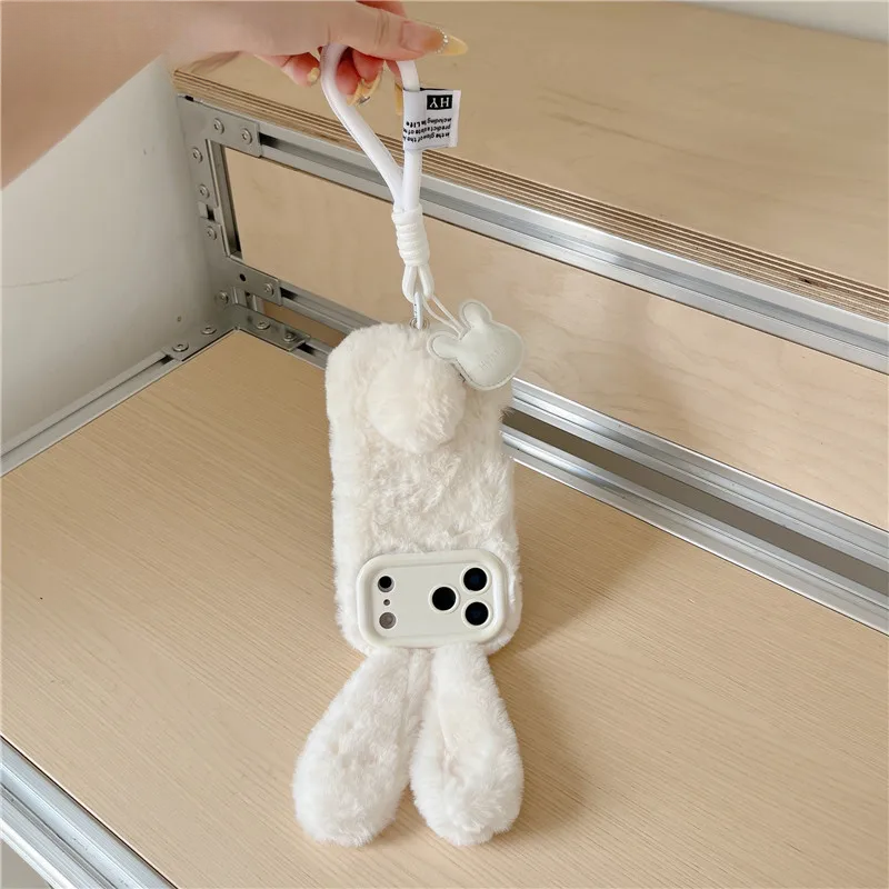 【ふわもこファーシリーズ】うさ耳 ポンポン ストラップ付き スマホケース|iPhone対応 #250320