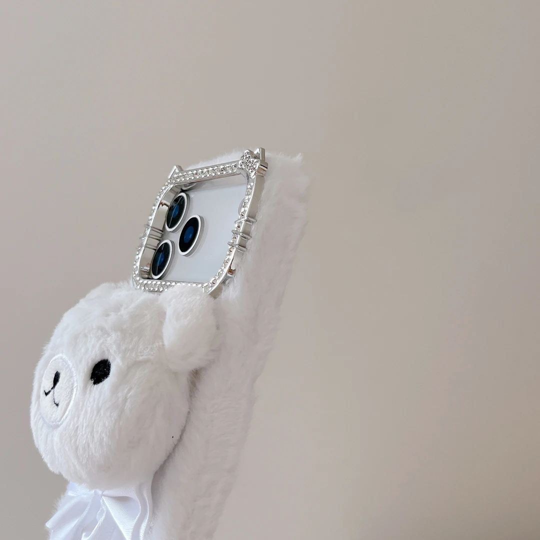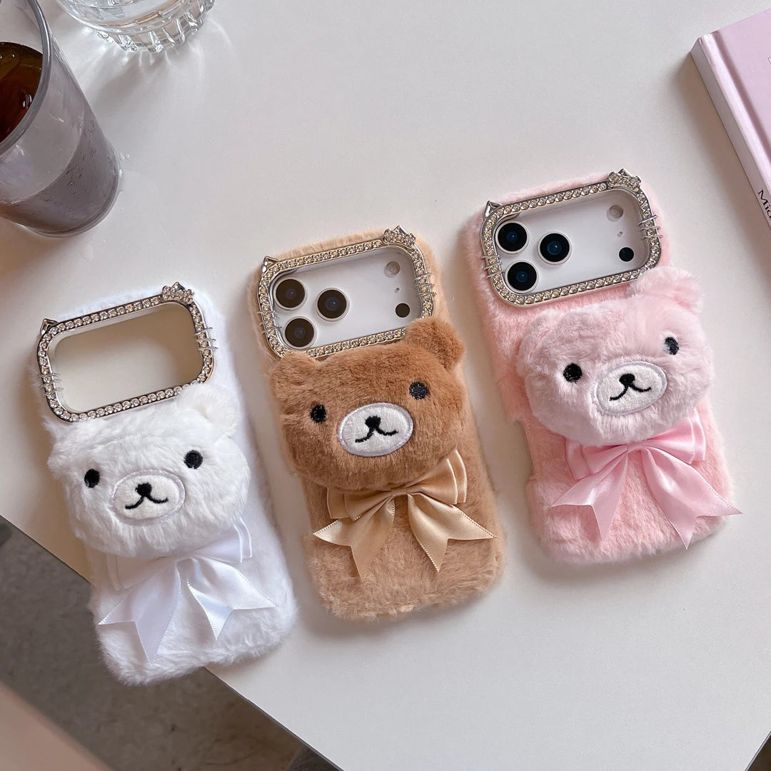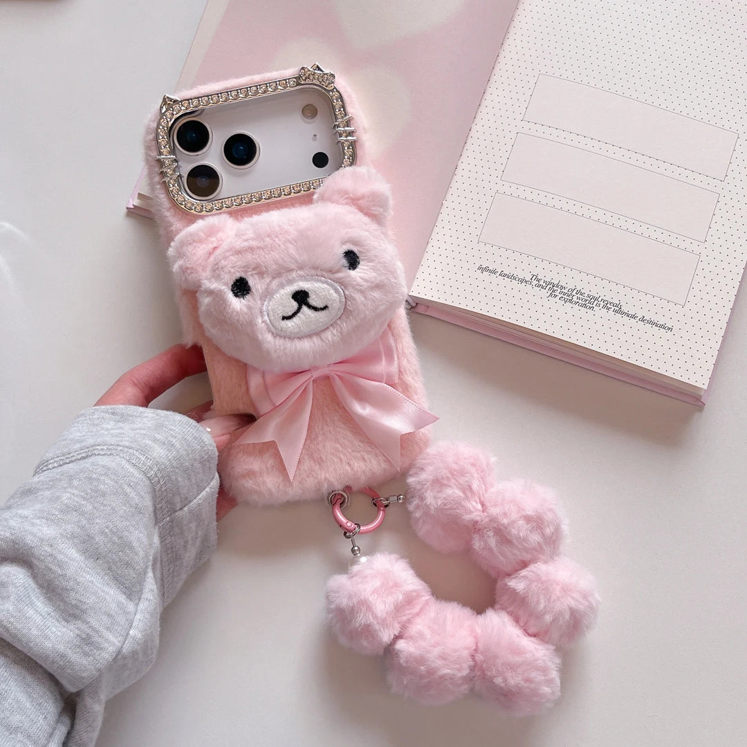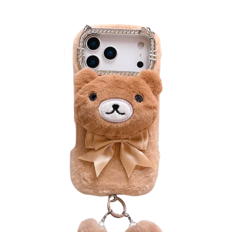 【アニマルフェイスシリーズ】くまさんぬいぐるみ スマホケース|ふわもこ立体デザイン × ポンポンストラップ付き|iPhone対応 #241128