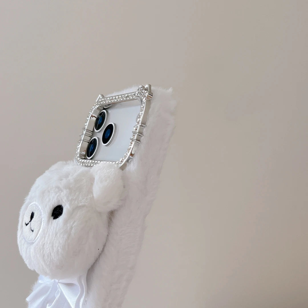 思わず抱きしめたくなる、ふわふわのくまさんスマホケース。