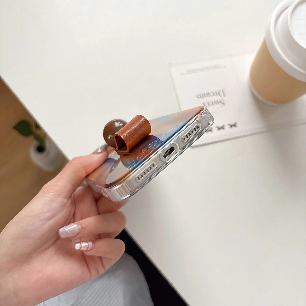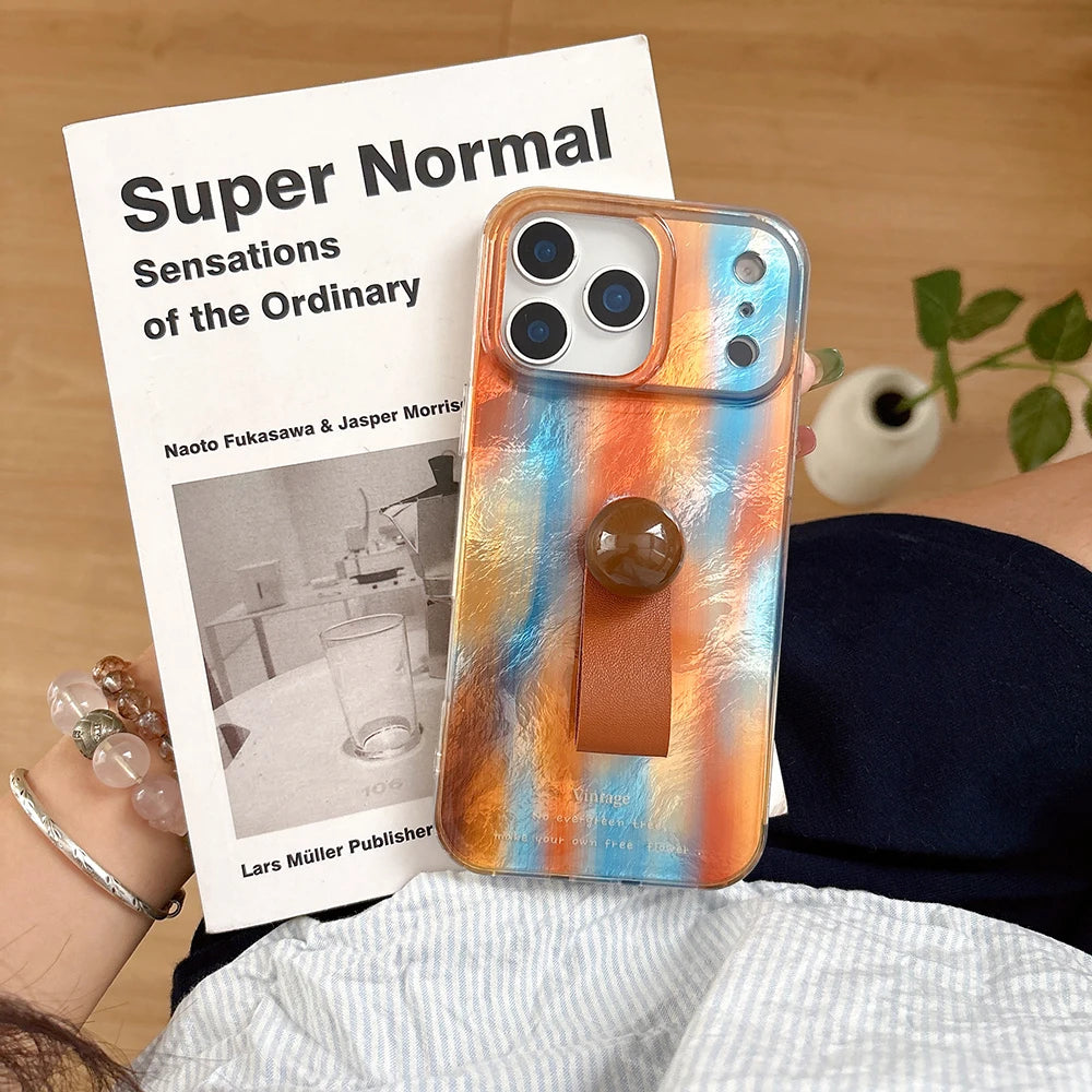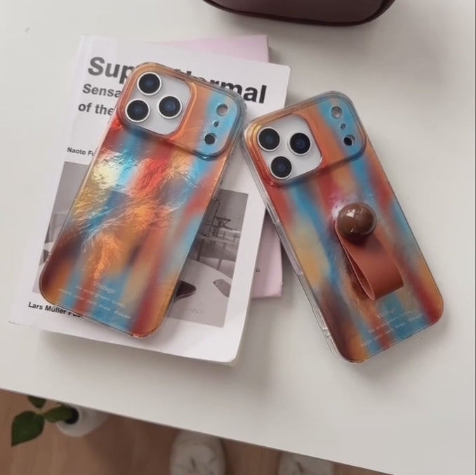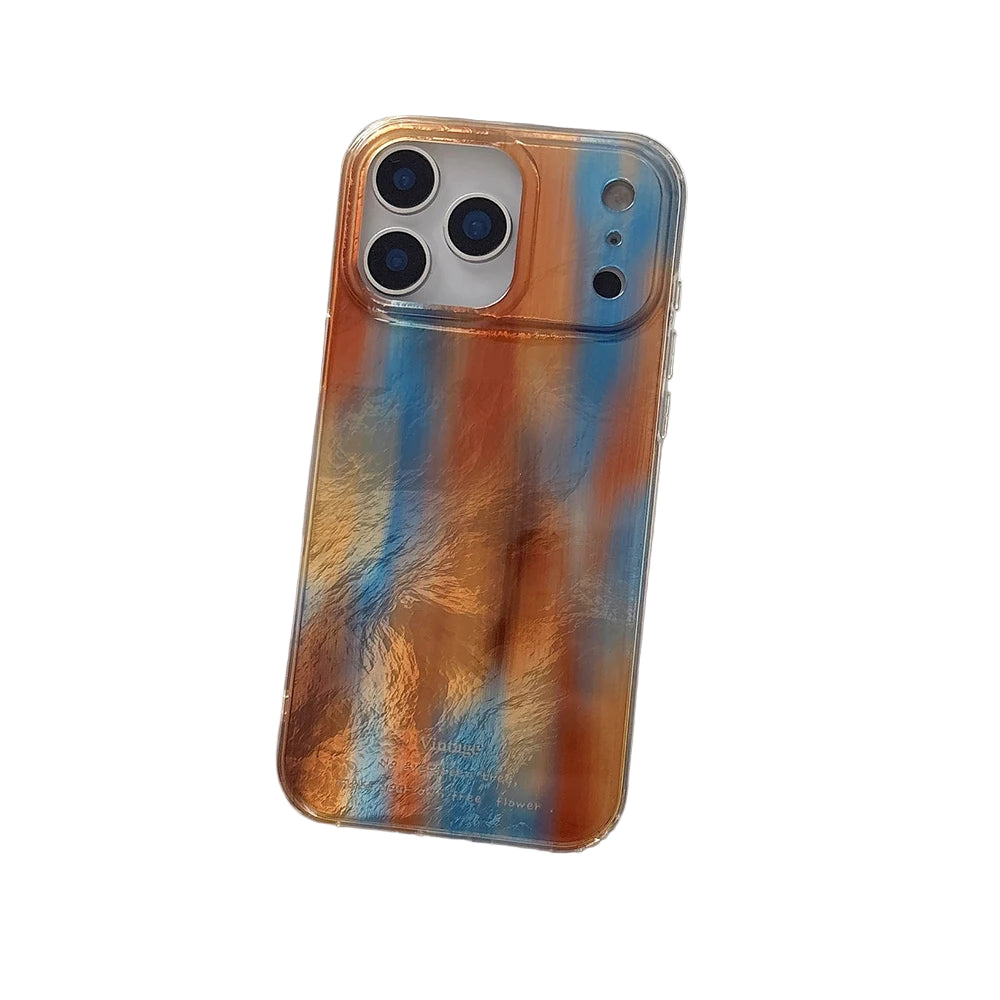 まるでアート作品のような、深みのあるオレンジとブルーのマーブル模様が美しいスマホケース🎨✨