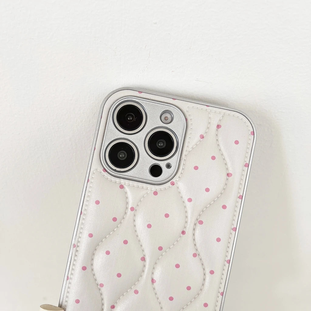【ウェーブキルティング】ドットステッチ×クッション スマホケース|iPhone対応 #241220