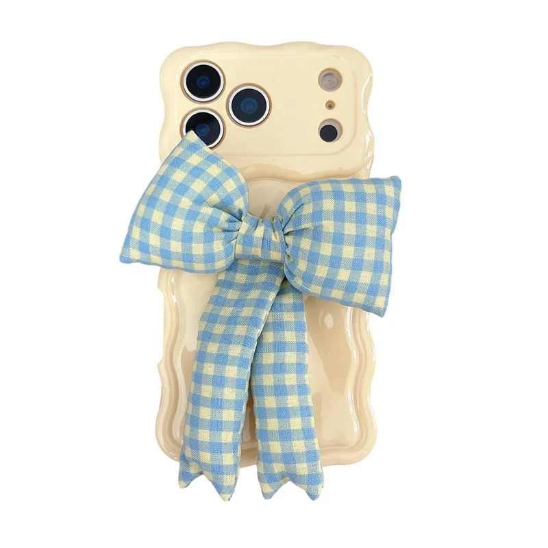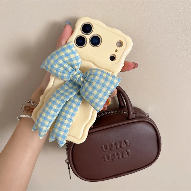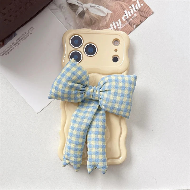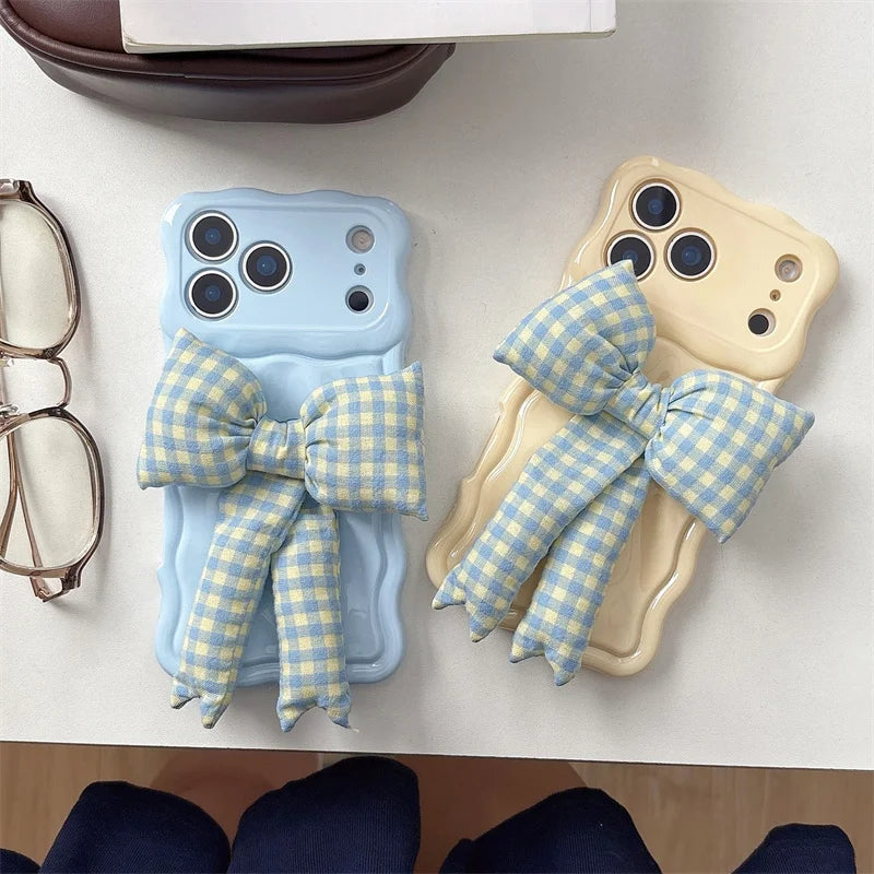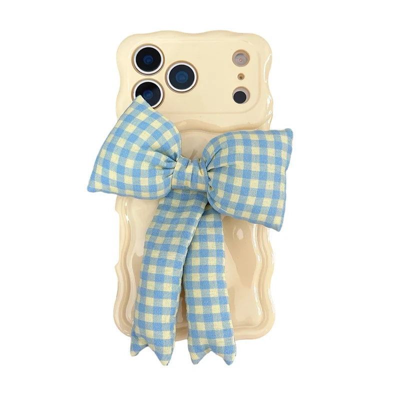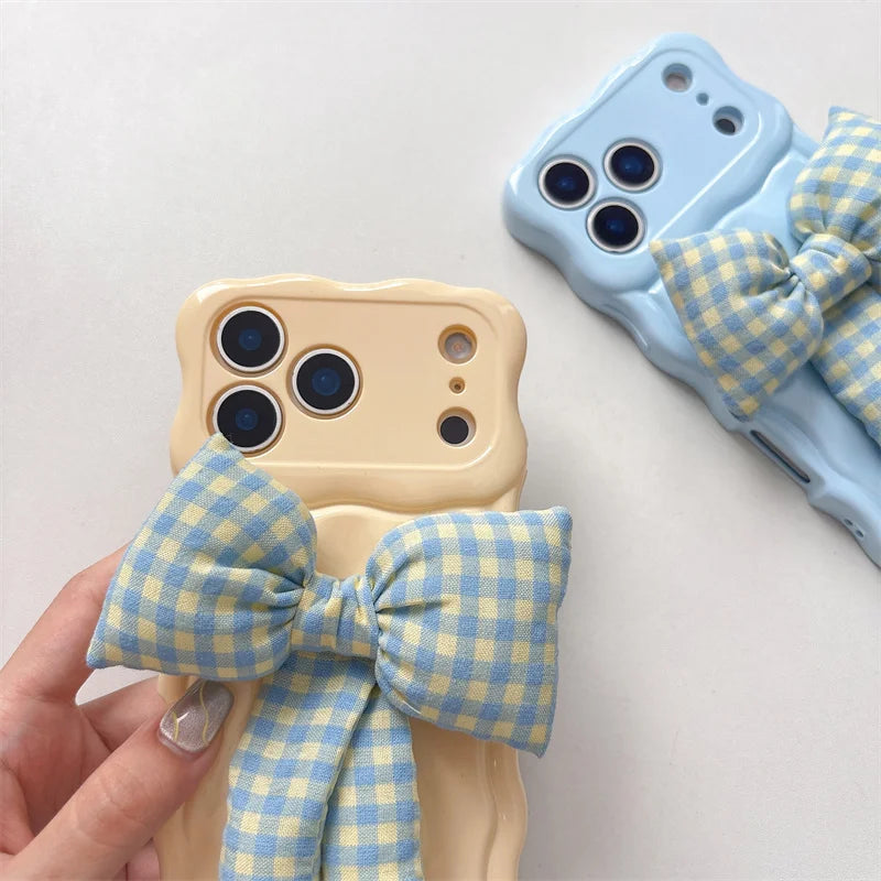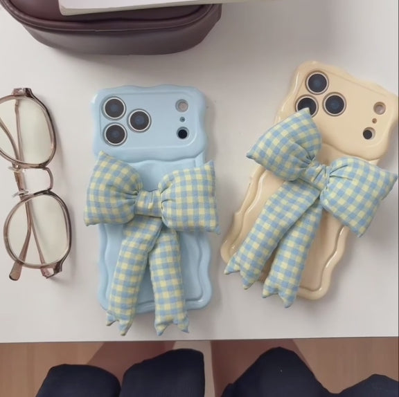 【ウェーブフレーム】ぷっくり 立体 ギンガムチェックリボン スマホケース|iPhone対応 #241230