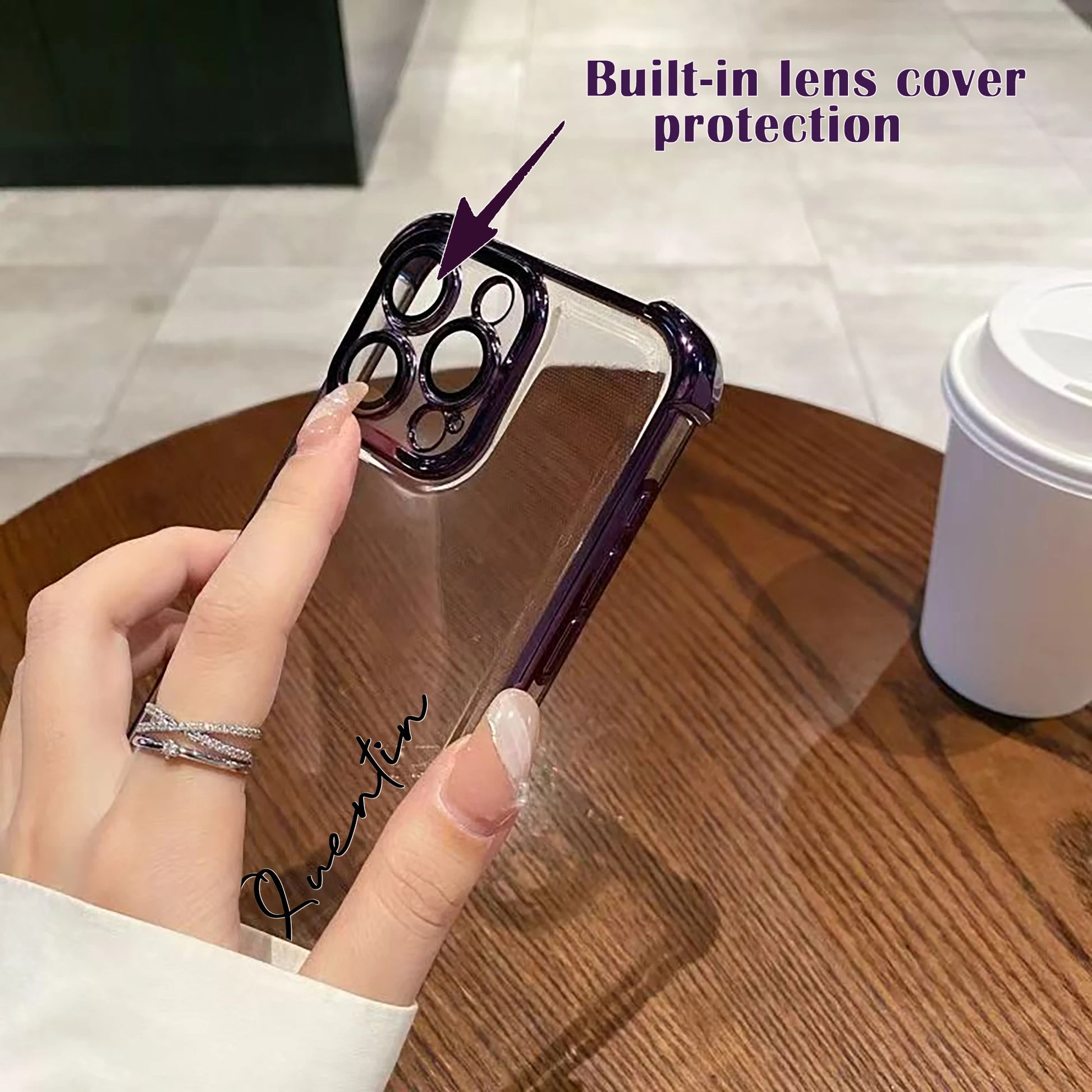 メタリックフレーム×クリア背面の上品な組み合わせは、シンプルながら高級感あふれる仕上がりです。