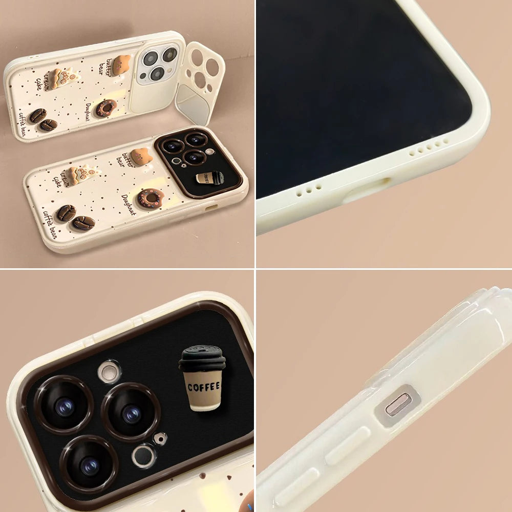 【カフェベア】くまちゃんチャーム ×コーヒービーンズ ドーナツ スマホケース|iPhone対応 #250226