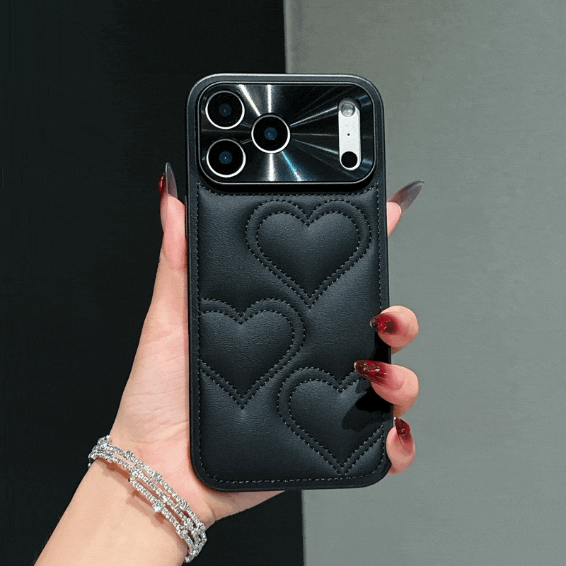 【キルティングハート】立体ハートステッチ×レザー調 スマホケース|iPhone対応 #250101