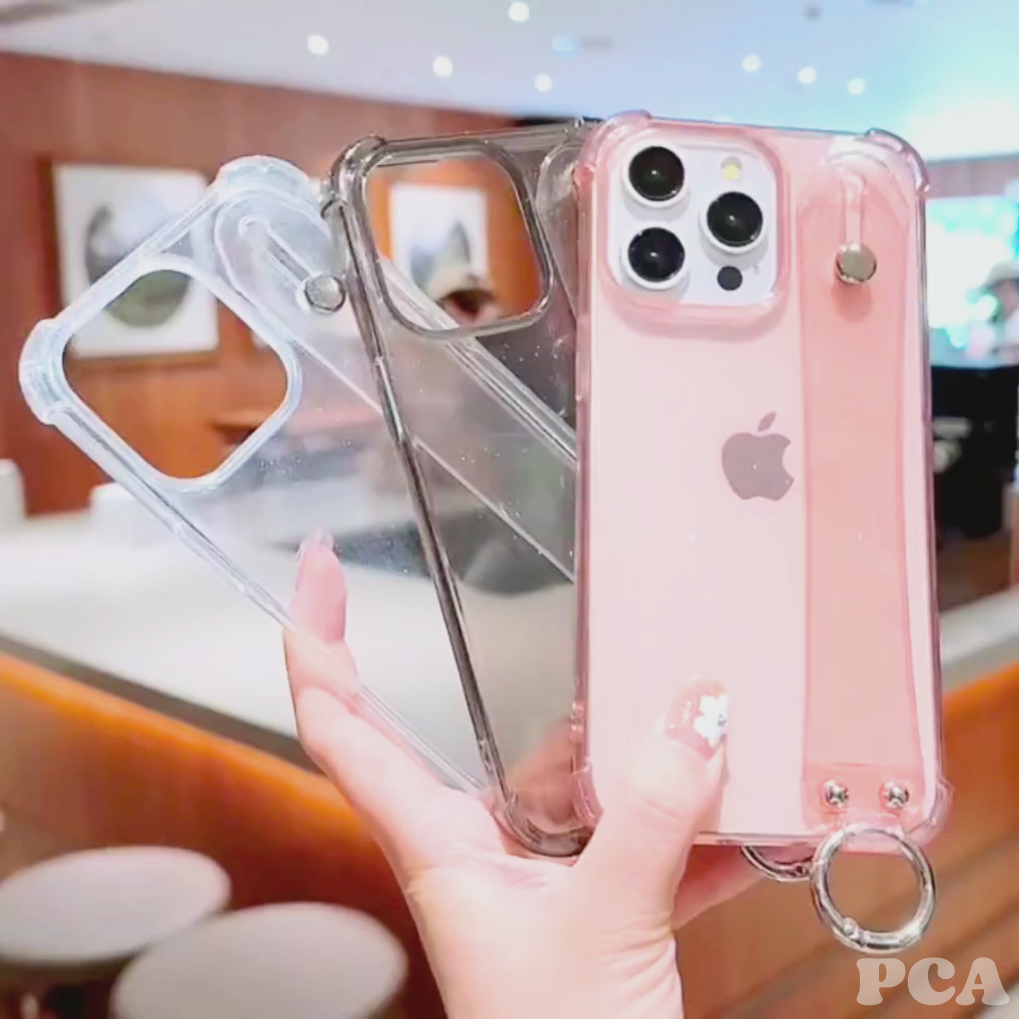 【クリアシリーズ】キラキラ グリッター 落下防止 ハンドストラップ付き 大人可愛い おしゃれ 耐衝撃 透明 スマホケース|iPhone対応 #250403