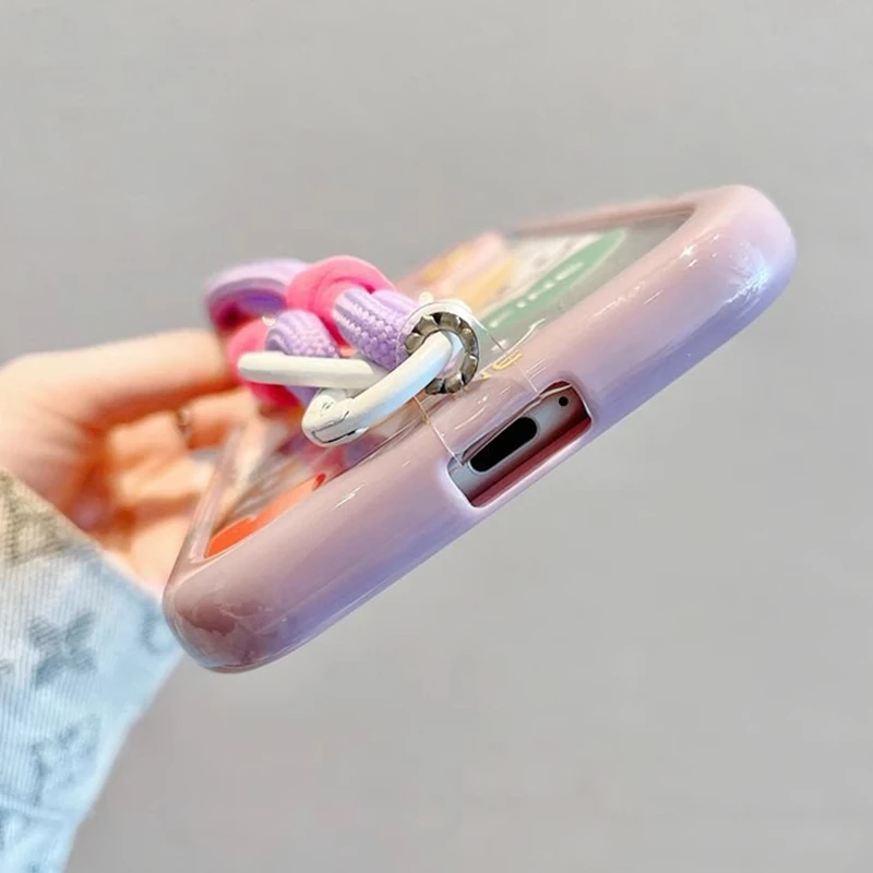 手元を明るく彩るカラフルでポップなデザインのスマホケース。