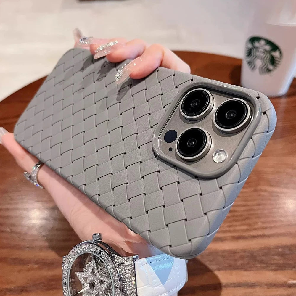 【シンプルシリーズ】編み込みレザー調 高級感おしゃれスマホケース|iPhone対応 #251105