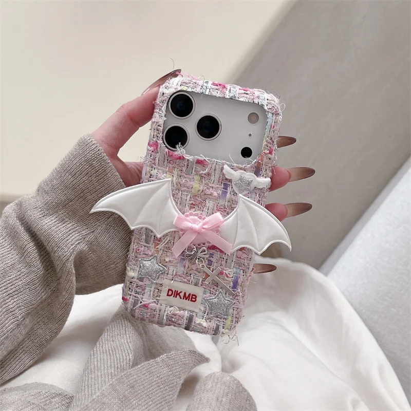 【ツイードリボンシリーズ】バットウィングツイード スマホケース|ガーリー×エッジデザイン|iPhone対応 #241204
