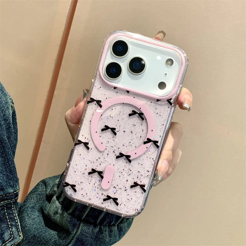 キラキラ輝くグリッターデザインに、リボン柄が散りばめられた大人可愛いスマホケース🎀