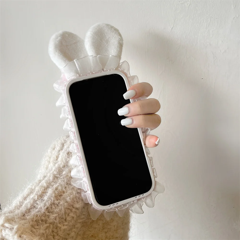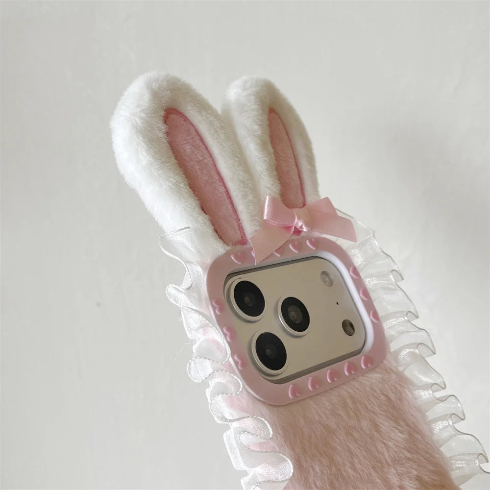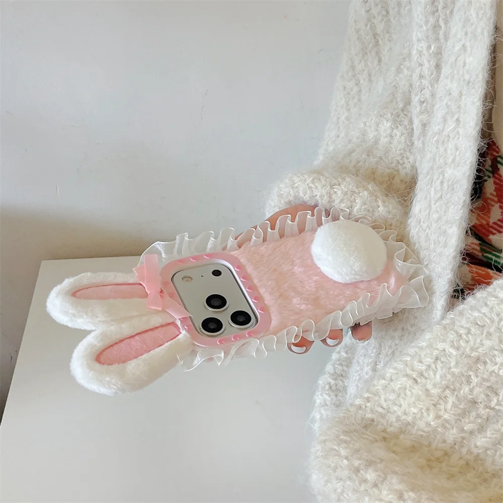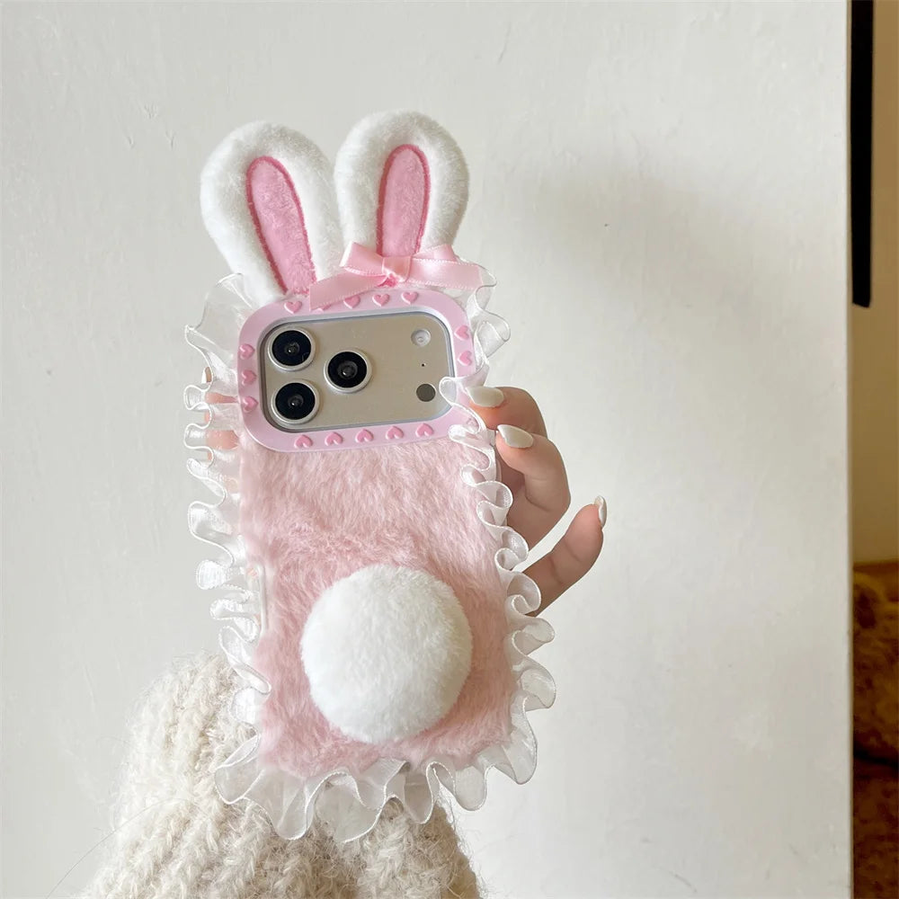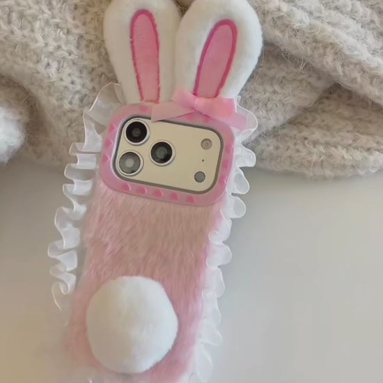 【バニーフリルファー】ふわもこウサギ耳×しっぽ付き スマホケース|iPhone対応 #241227