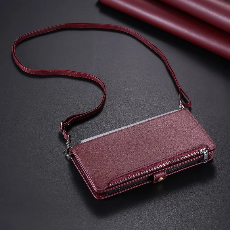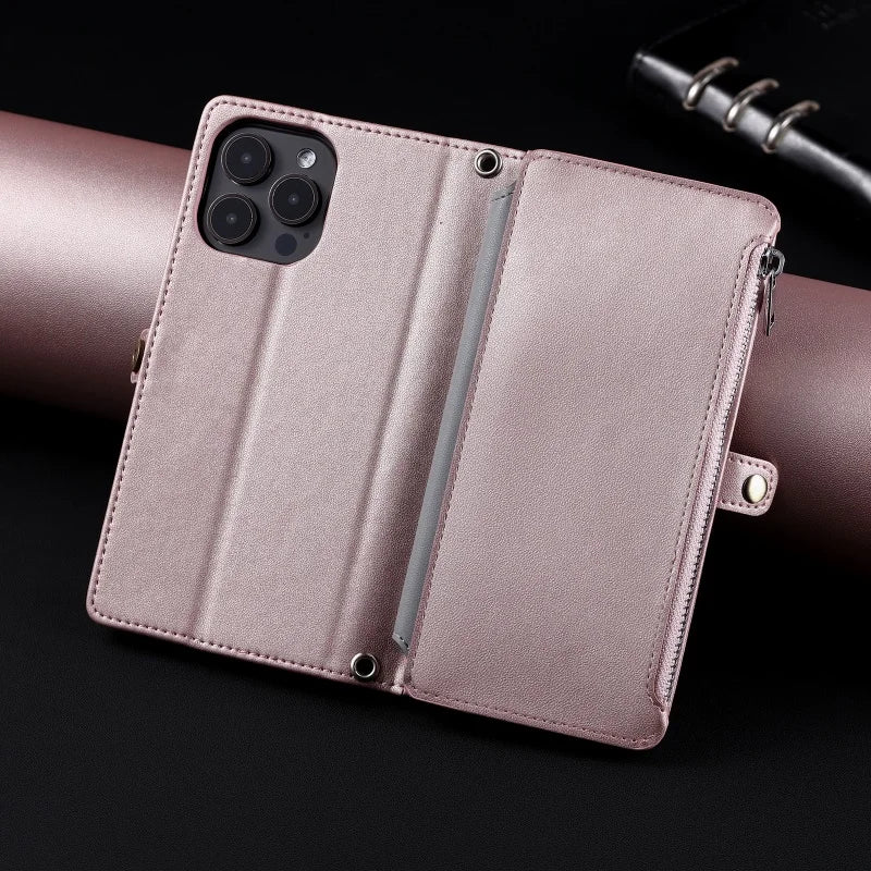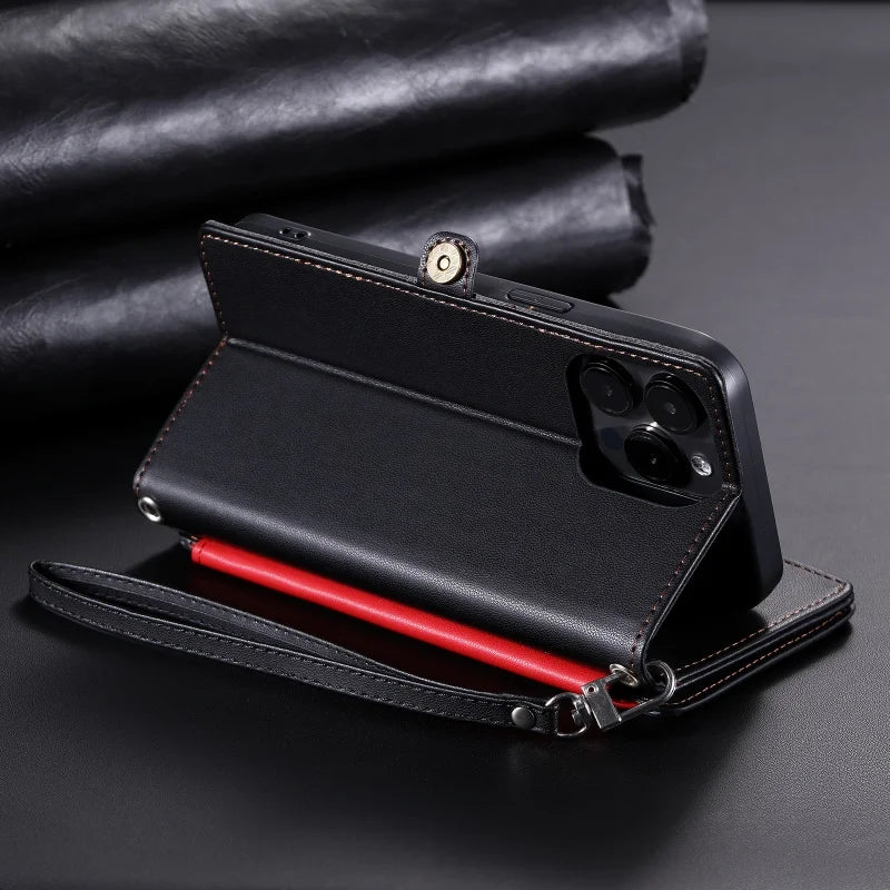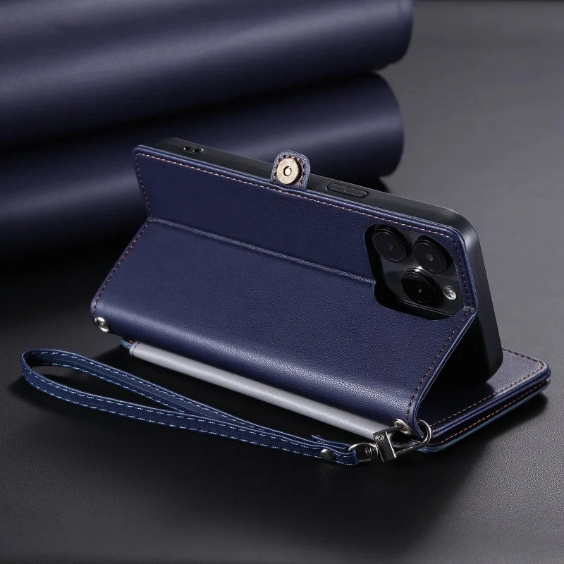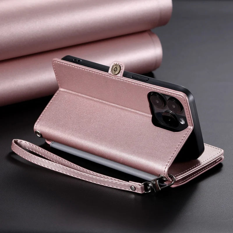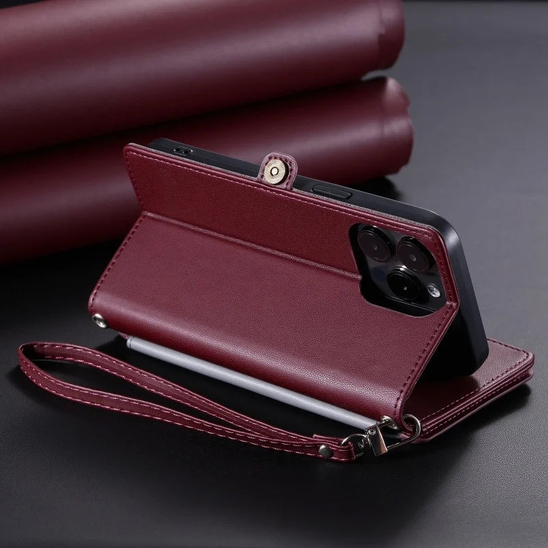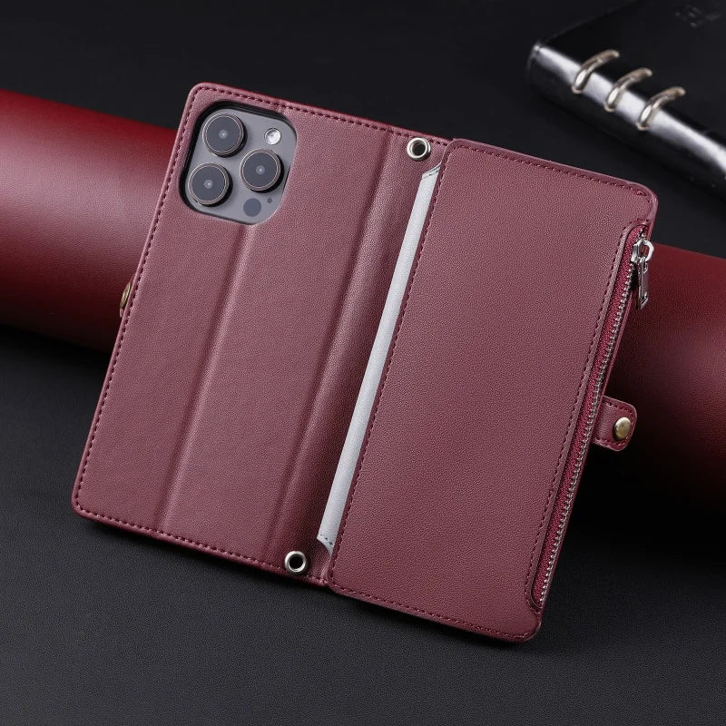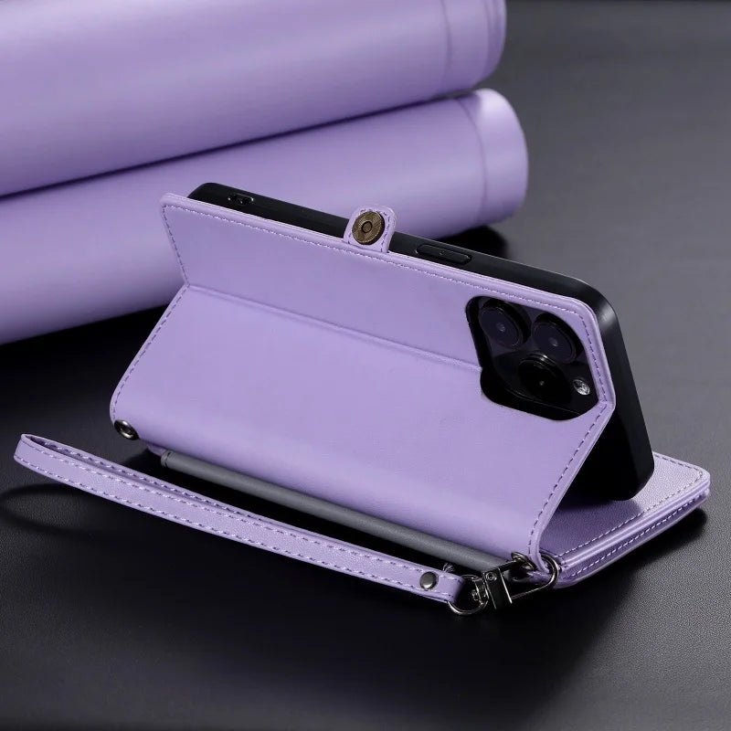 【ブックスタイル】シンプル レザー調 財布一体型 ブックスタイル 手帳型 iPhoneケース|ショルダー対応 #240126