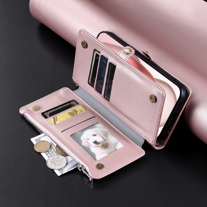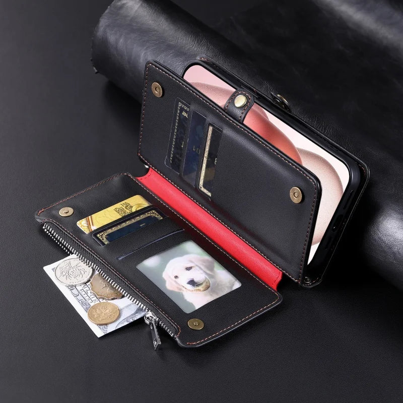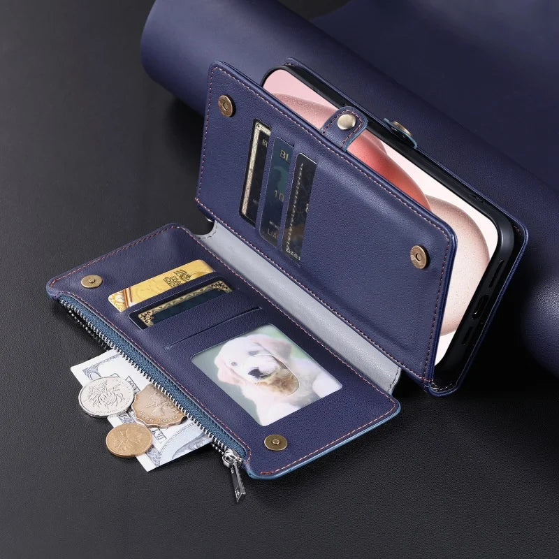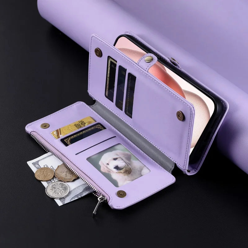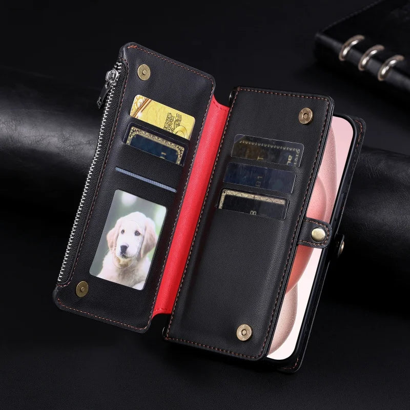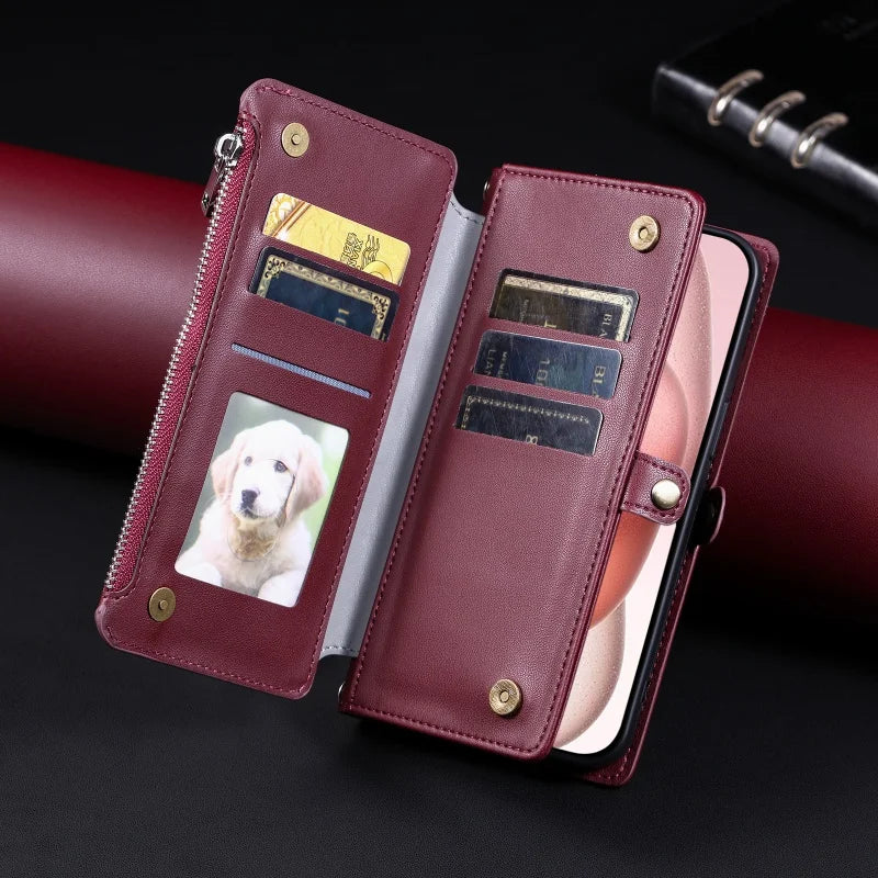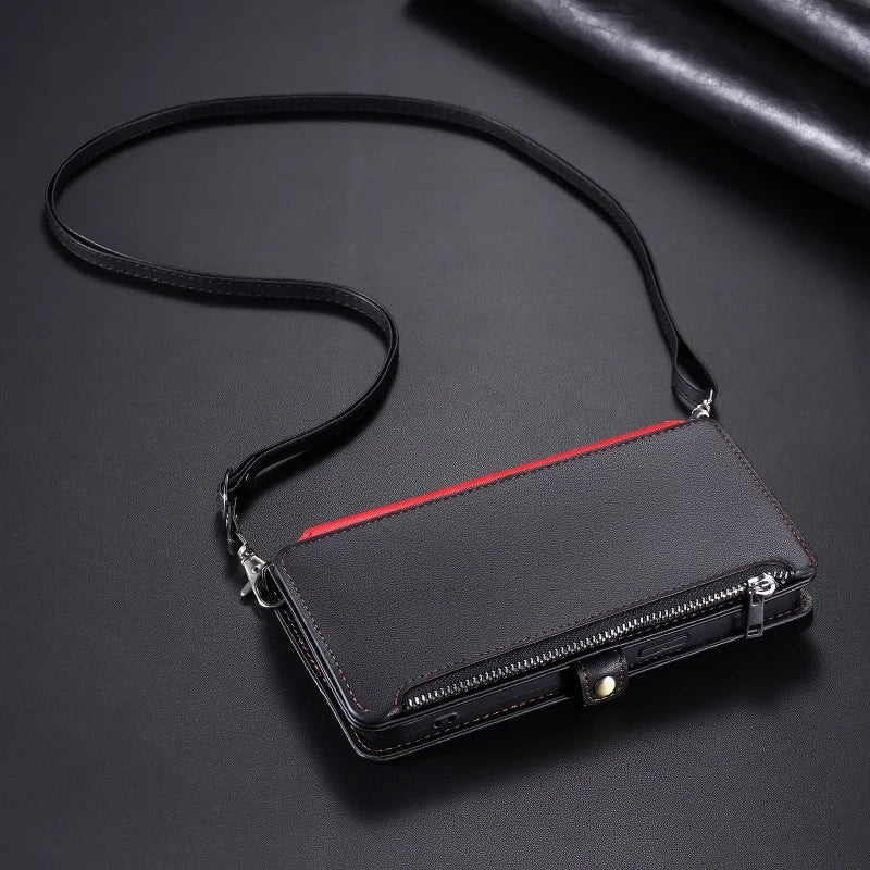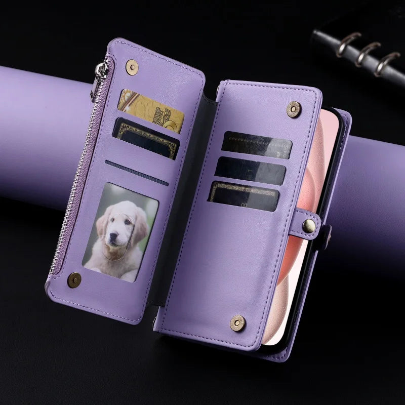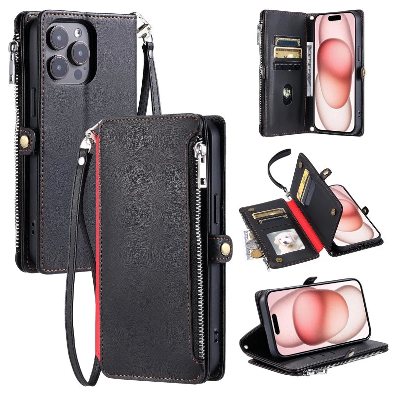 【ブックスタイル】シンプル レザー調 財布一体型 ブックスタイル 手帳型 iPhoneケース|ショルダー対応 #240126