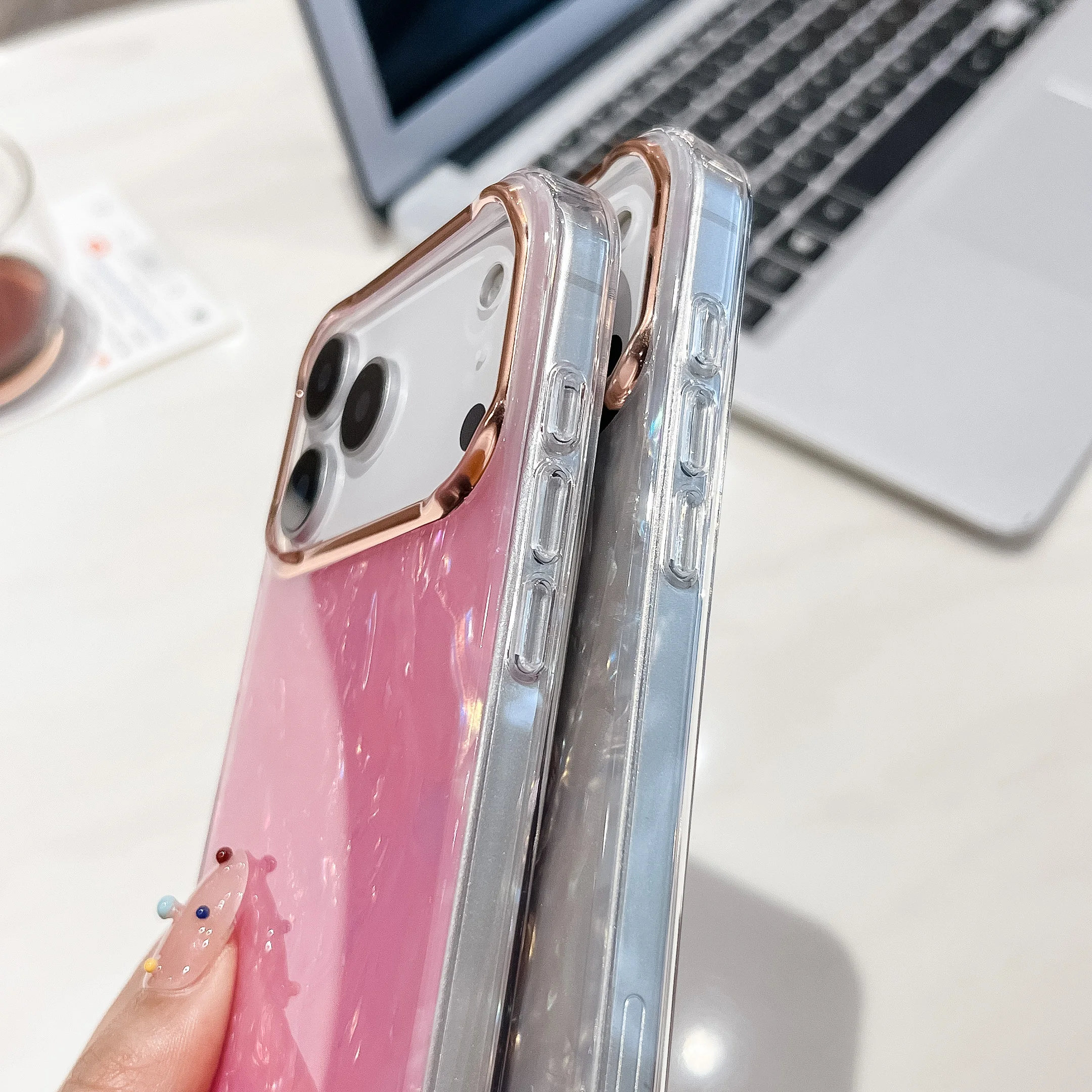 【マーブルシリーズ】大理石風 光沢パール調 クリアフレーム スマホケース|iPhone対応 #251201