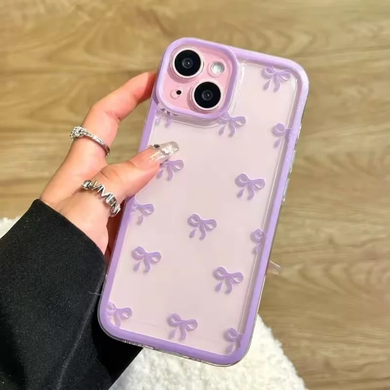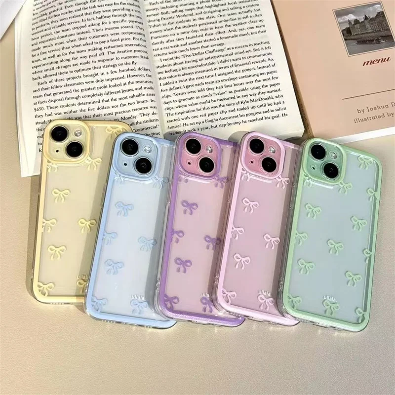 【リボンシリーズ】パステルカラーフレーム ミニ リボン柄 クリア スマホケース|iPhone対応 #250416