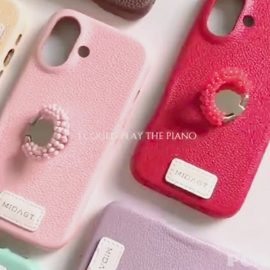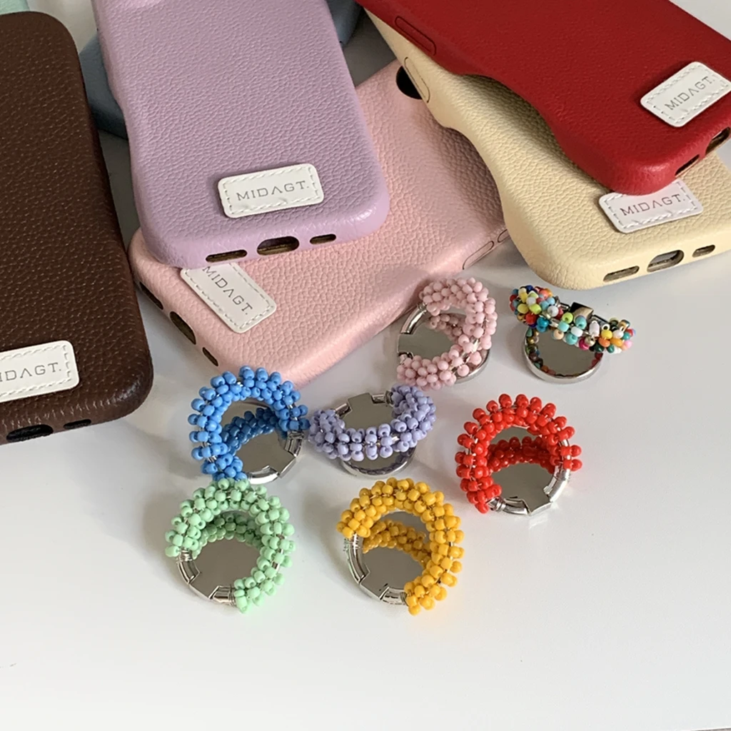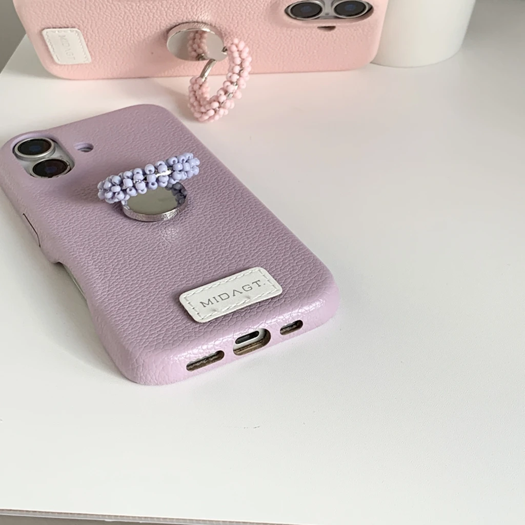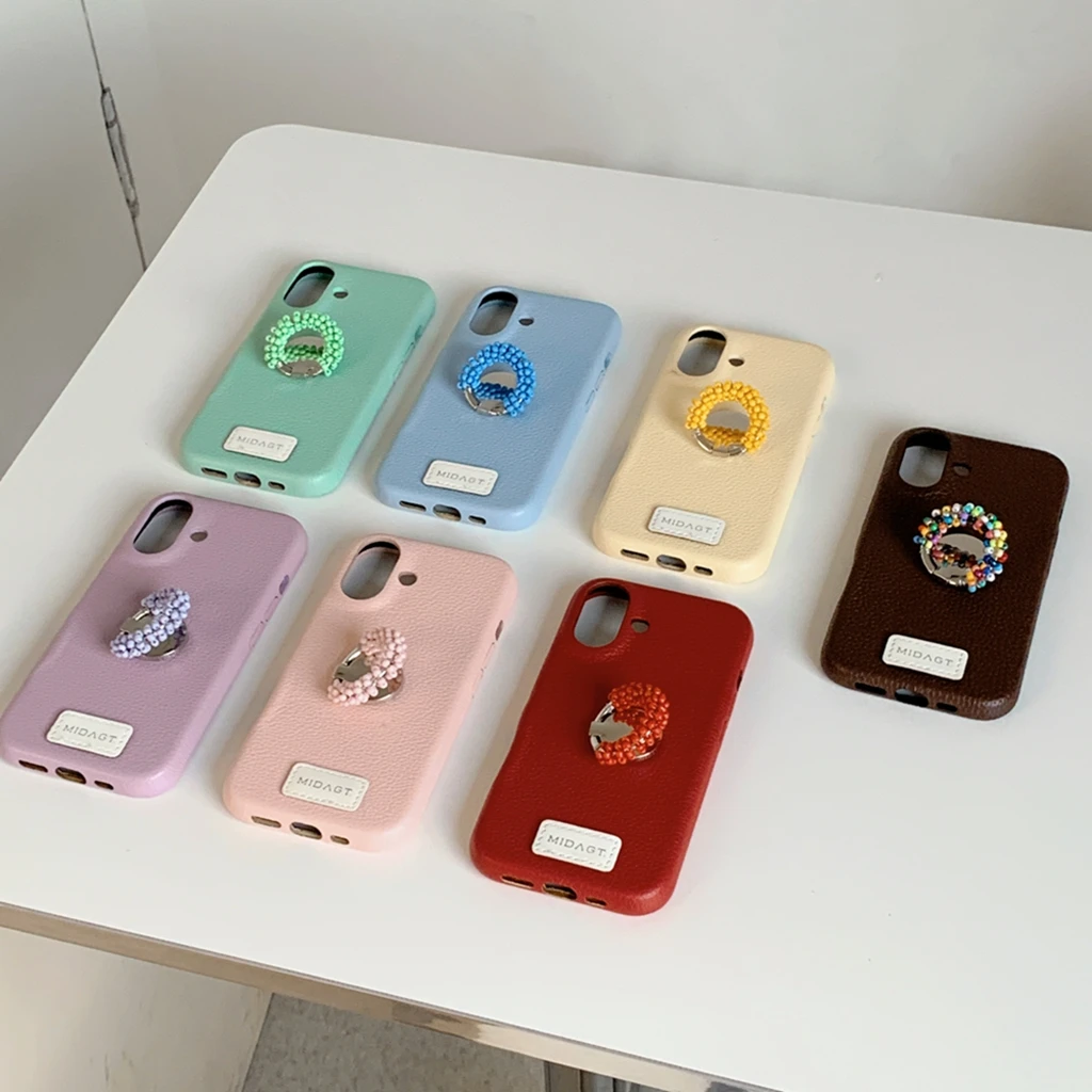 【レザー調】カラー ビーズ リング スタンド付き スマホケース|iPhone対応 #250421