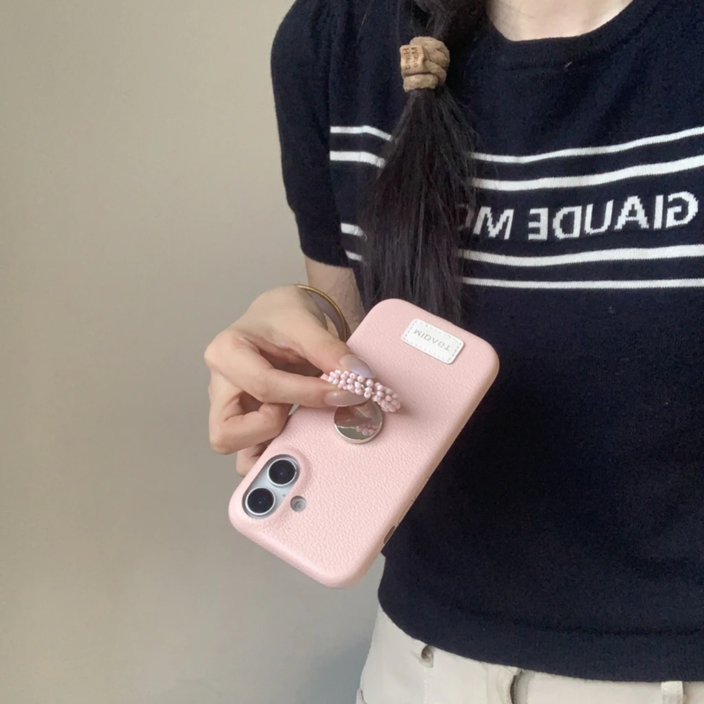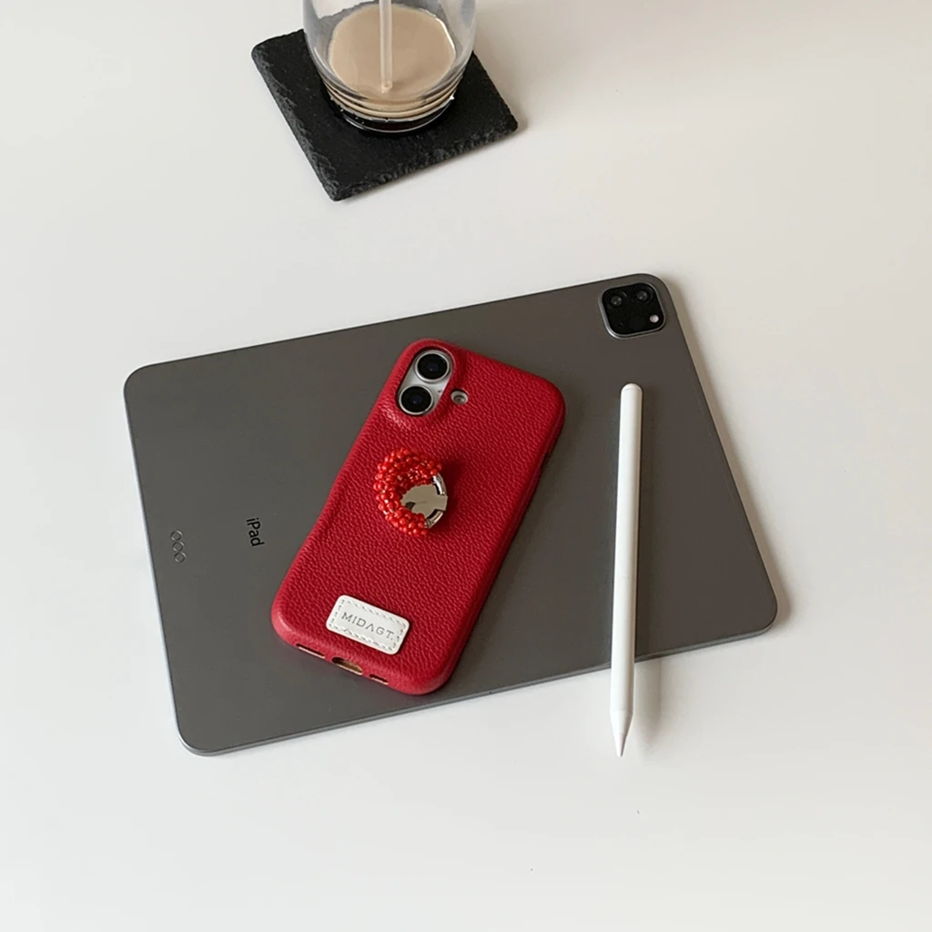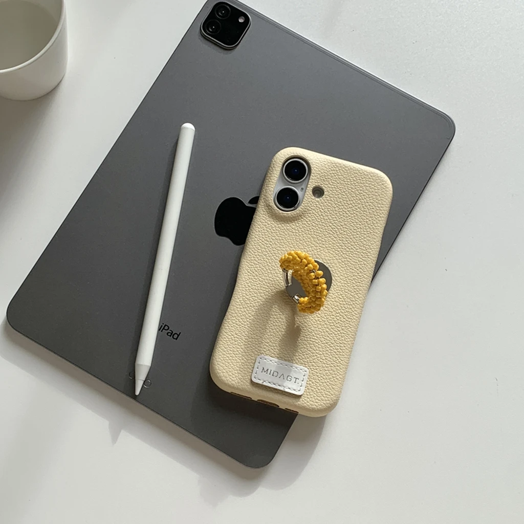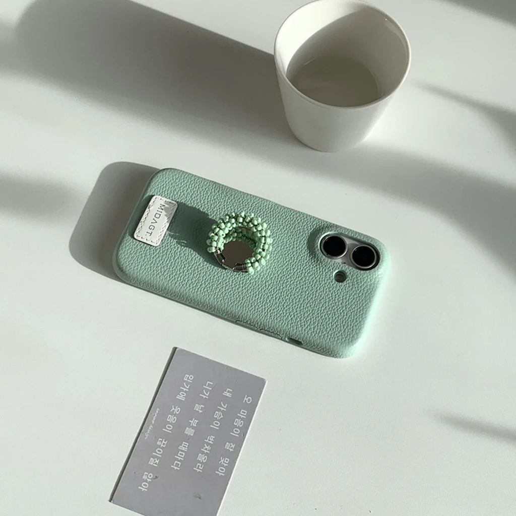 【レザー調】カラー ビーズ リング スタンド付き スマホケース|iPhone対応 #250421