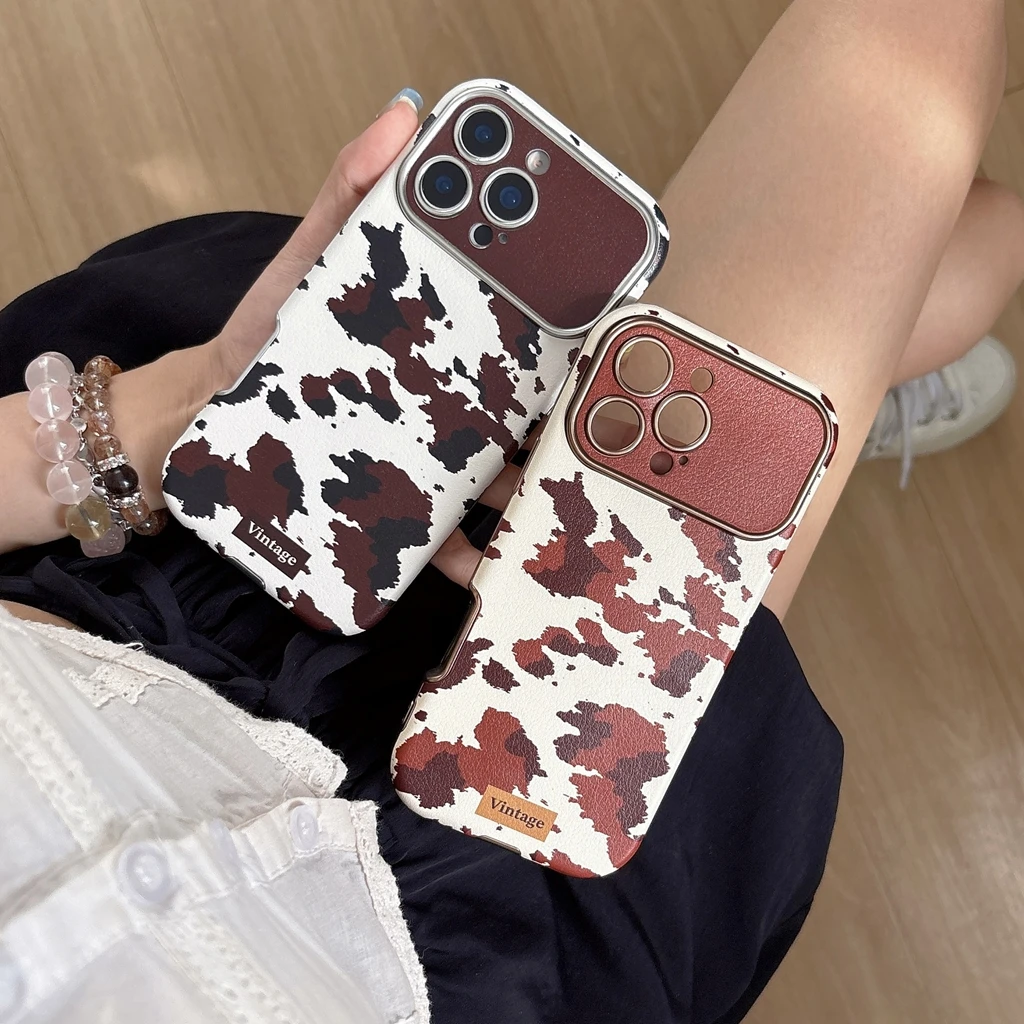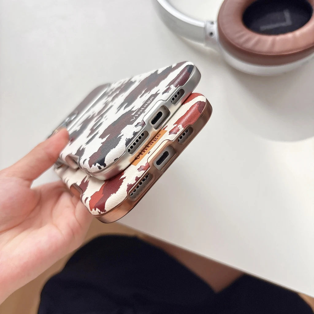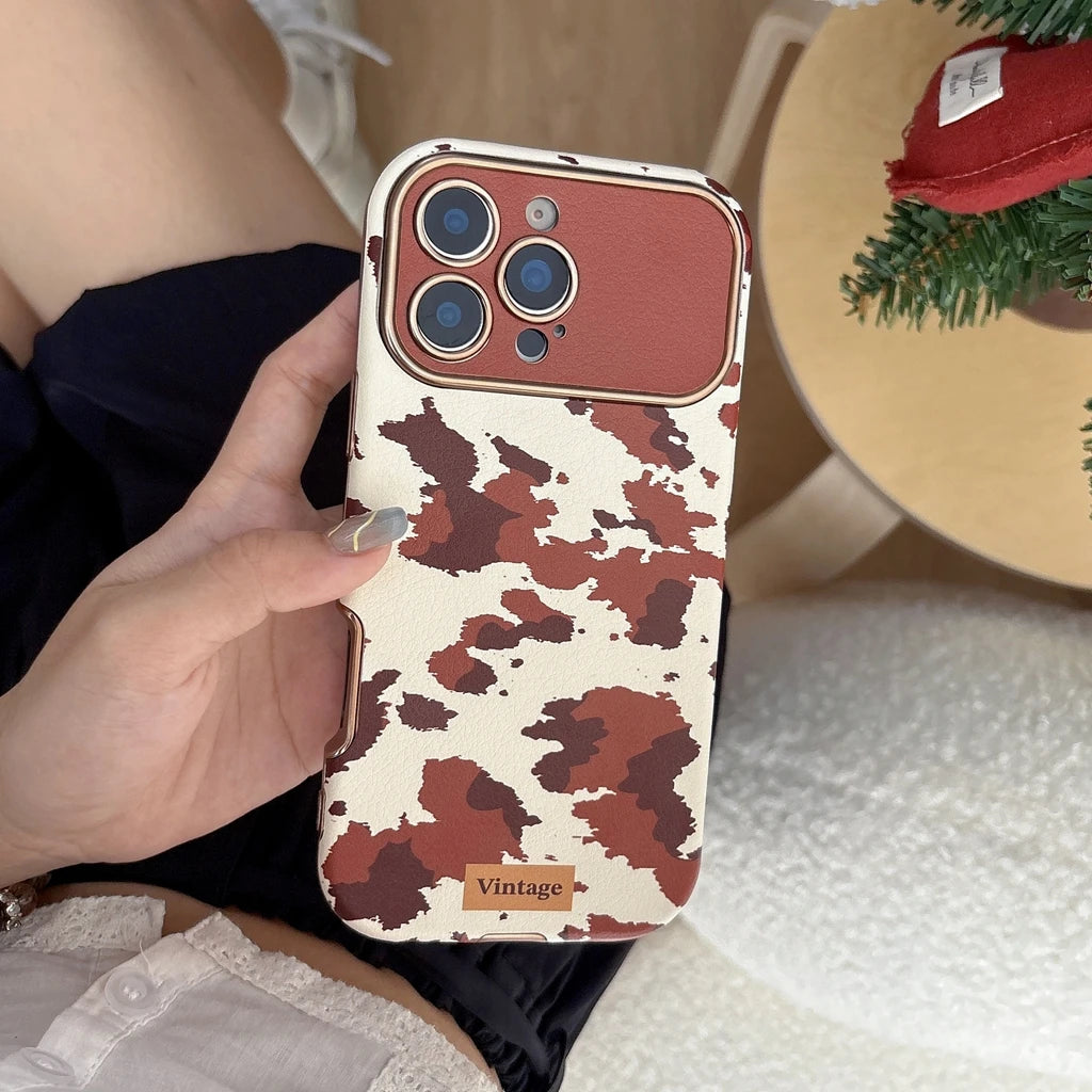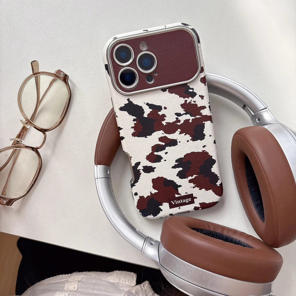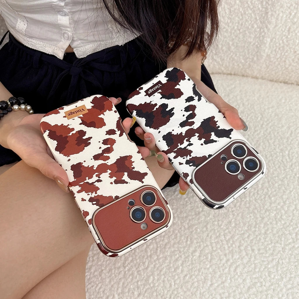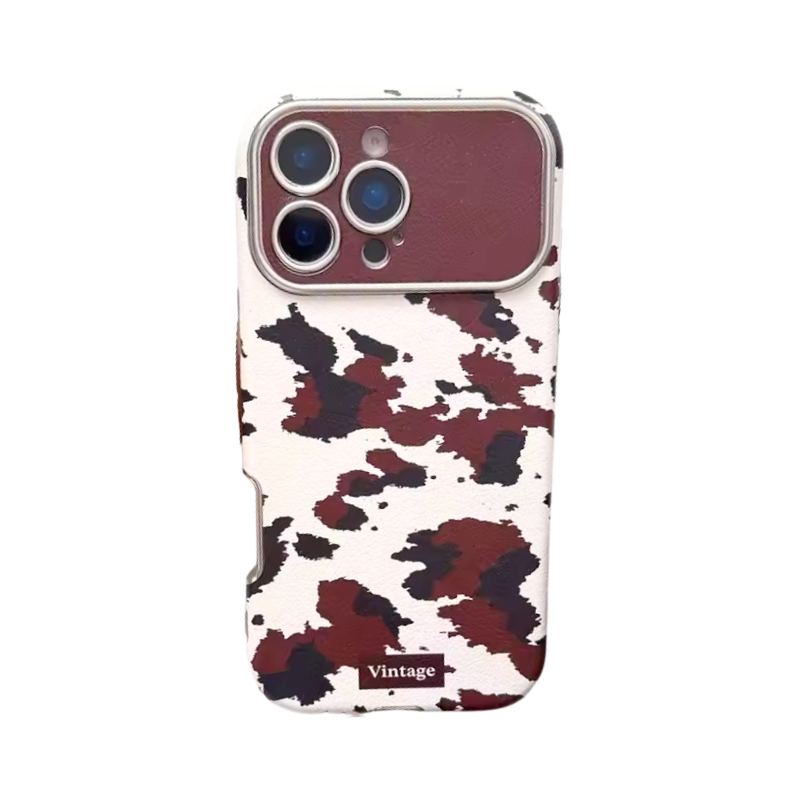 【ヴィンテージカウレザー】ブラウン牛柄×レザー調 スマホケース|iPhone対応 #250122
