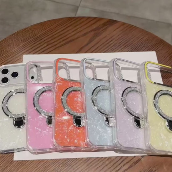 【大理石風】クラッシュデザイン × ジュエルリング リングスタンド付き スマホケース|iPhone対応 #250119