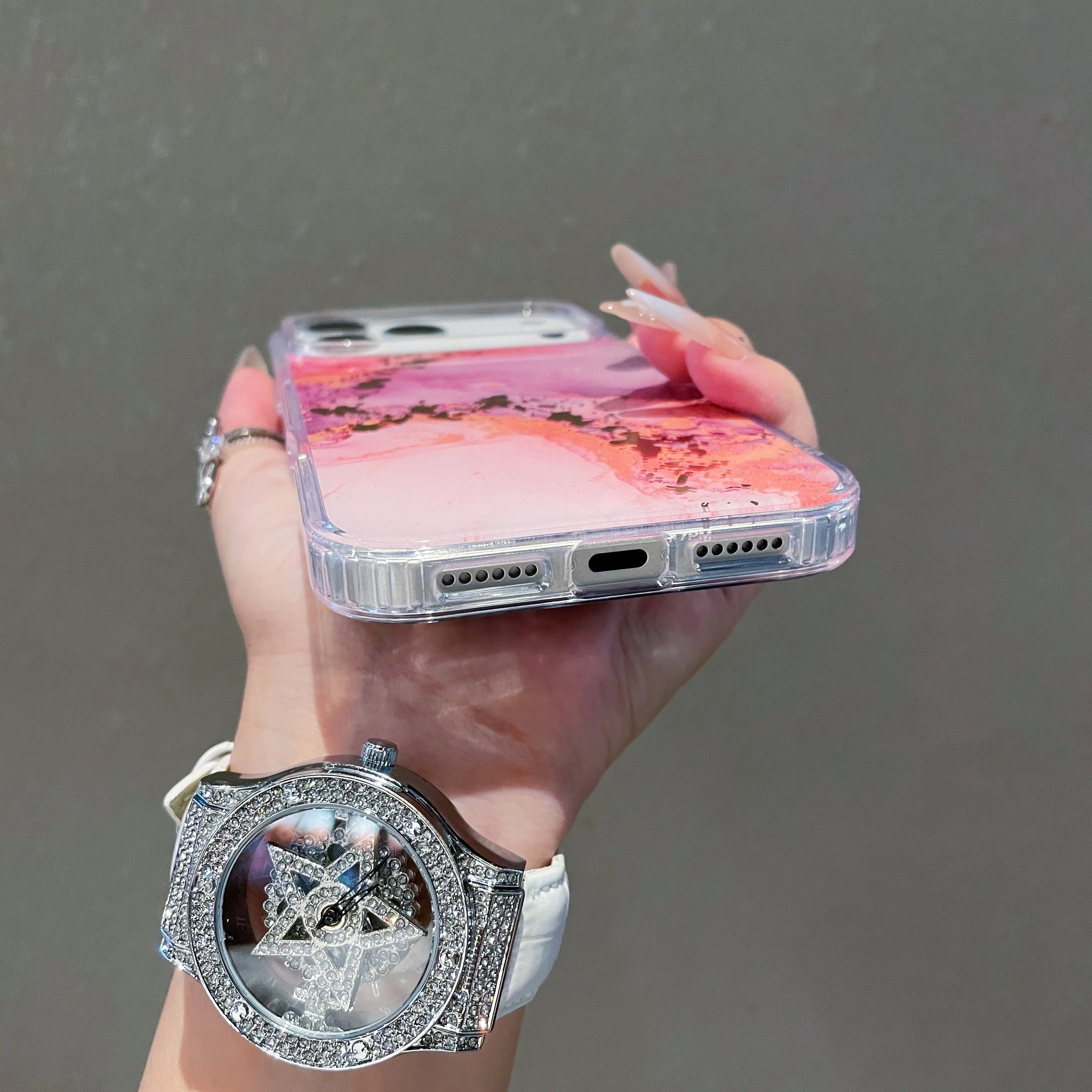 大理石風のマーブル柄と水彩アートが融合した、透明感あふれるiPhoneケースです。
