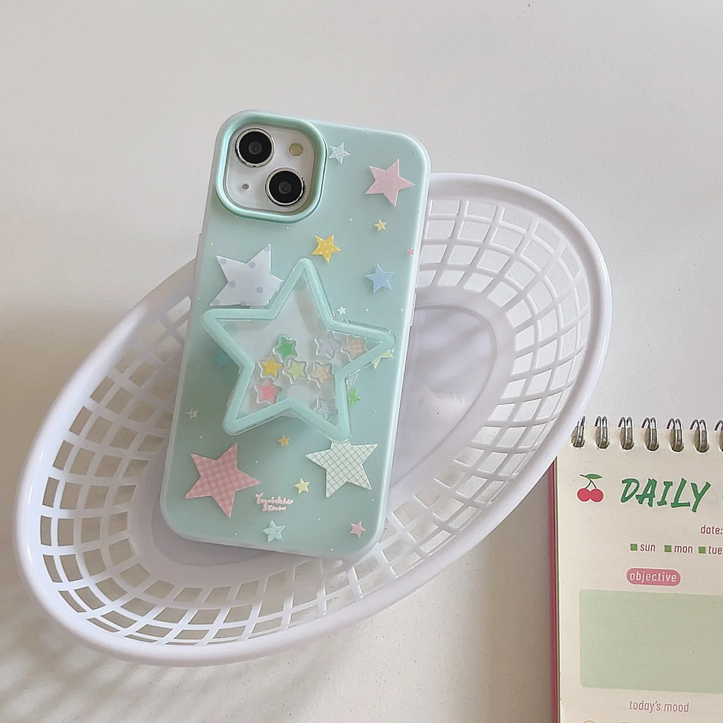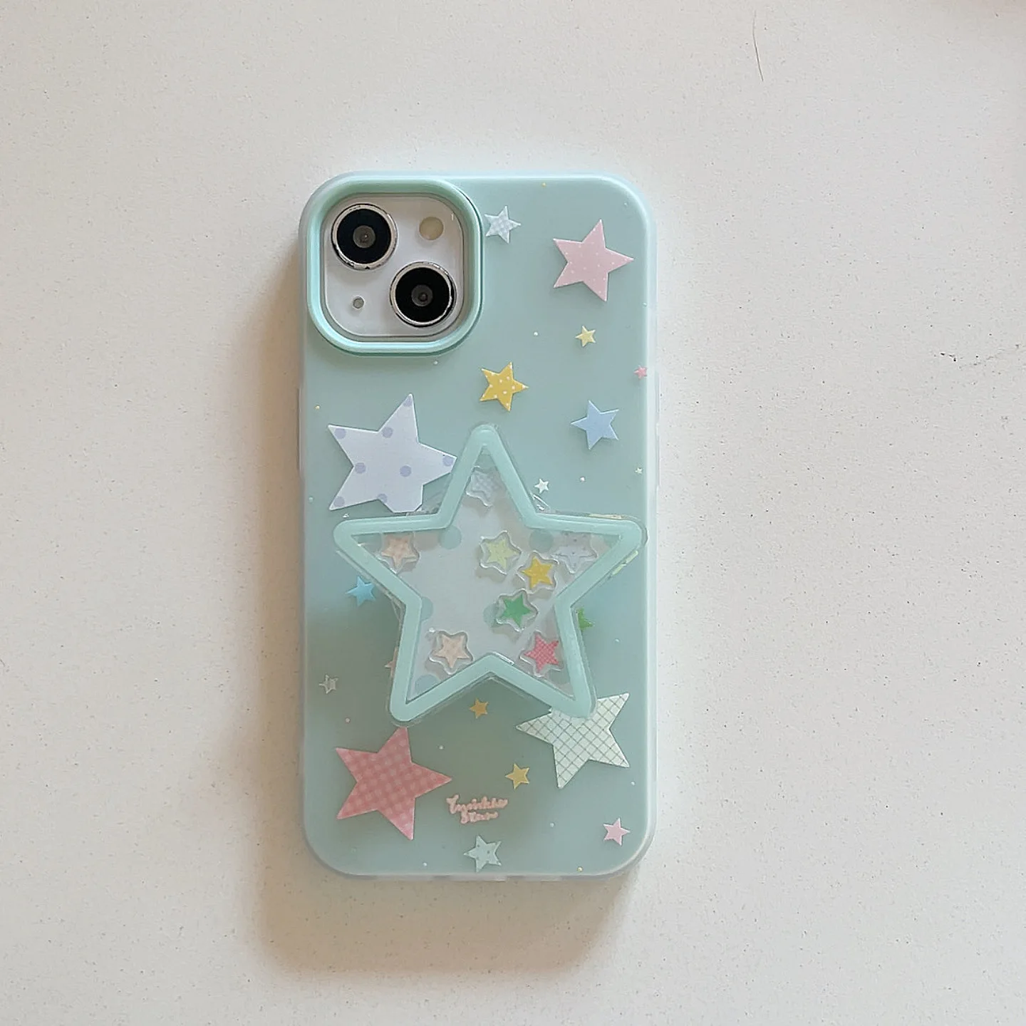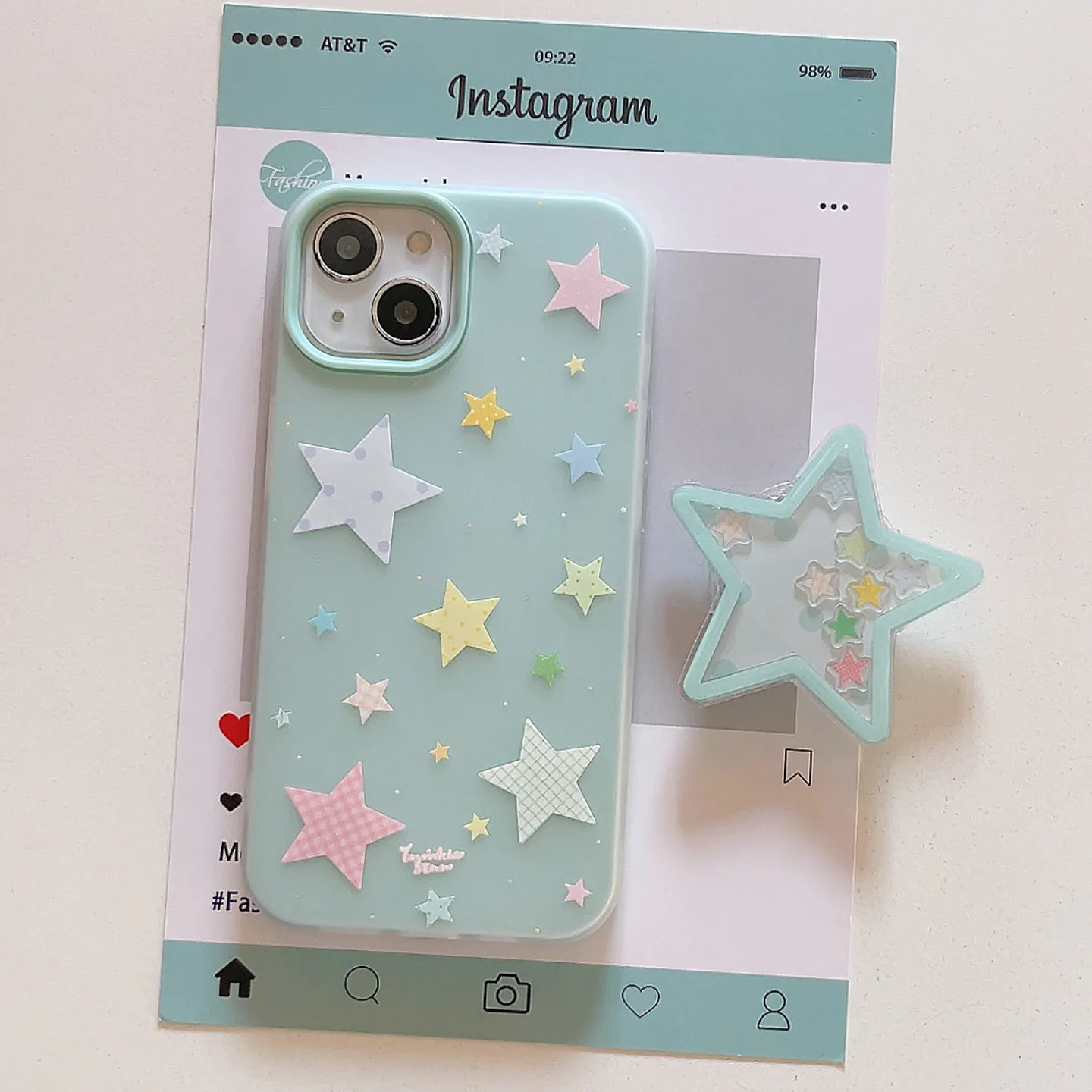 【星型グリップ×カラフルスター】きらめくポップデザインのソフトケース|iPhone対応 #250513