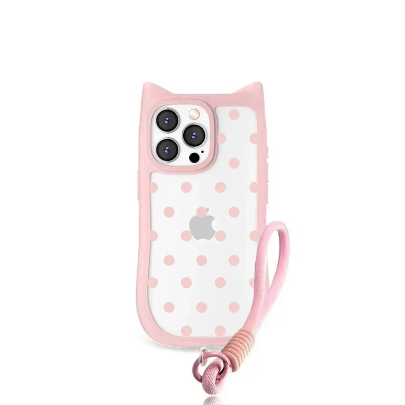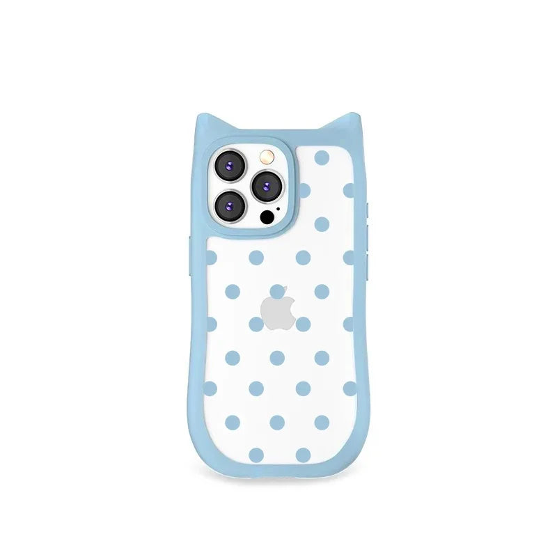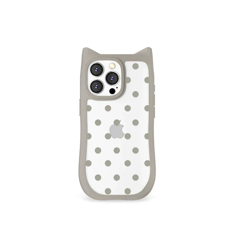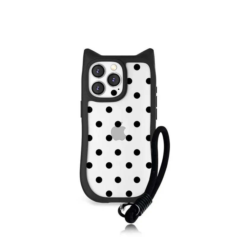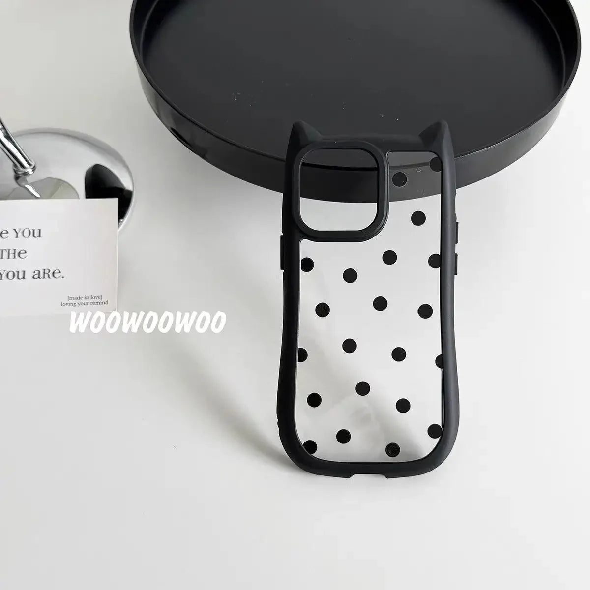 【猫耳シリーズ】ハートドット クリア iPhoneケース|水玉 クリアケース #240220
