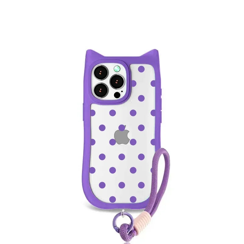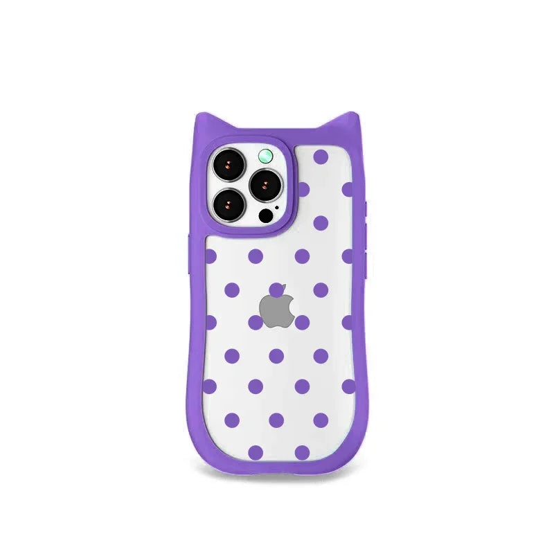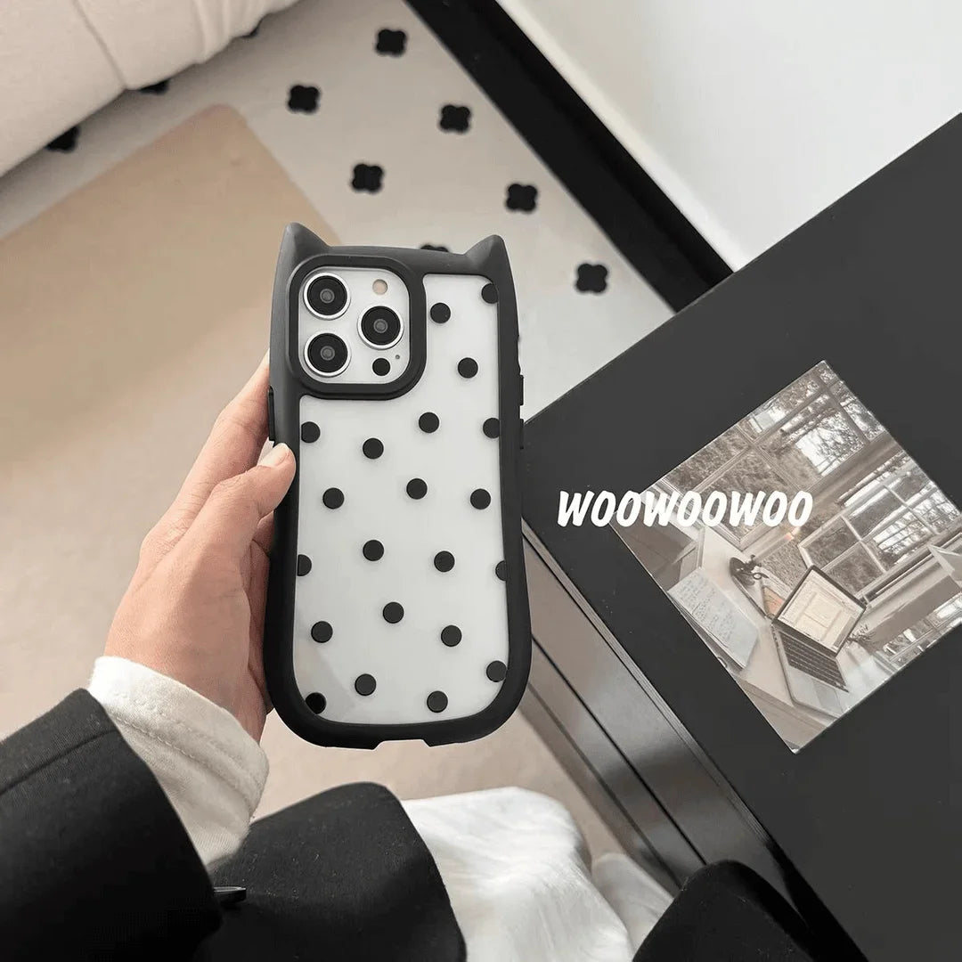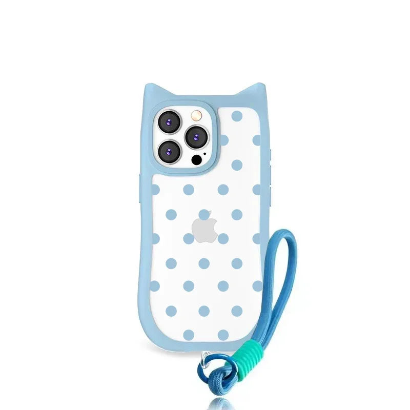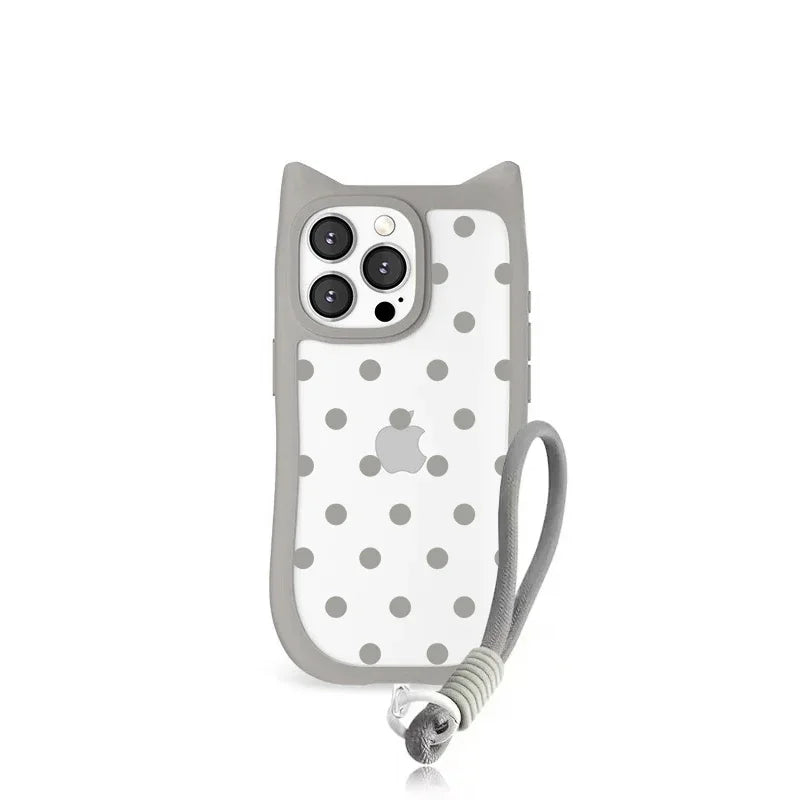 【猫耳シリーズ】ハートドット クリア iPhoneケース|水玉 クリアケース #240220