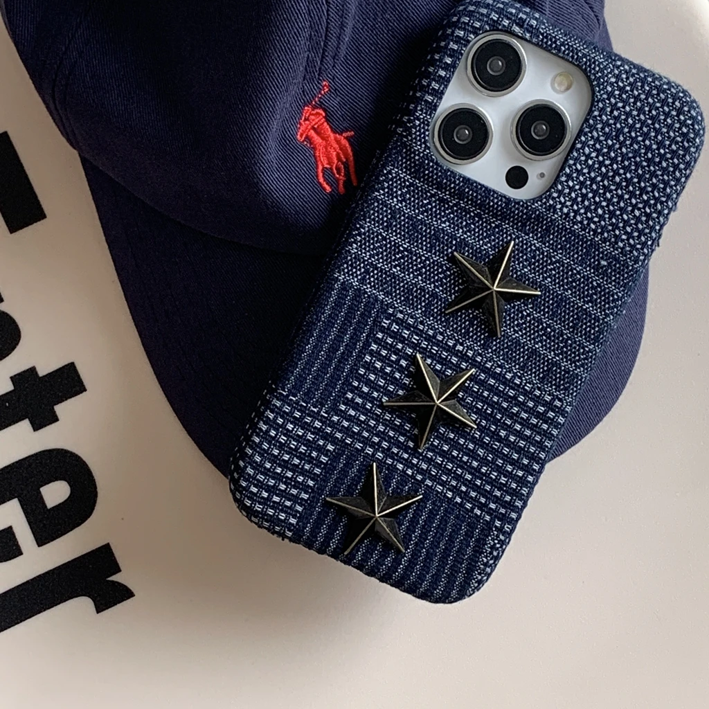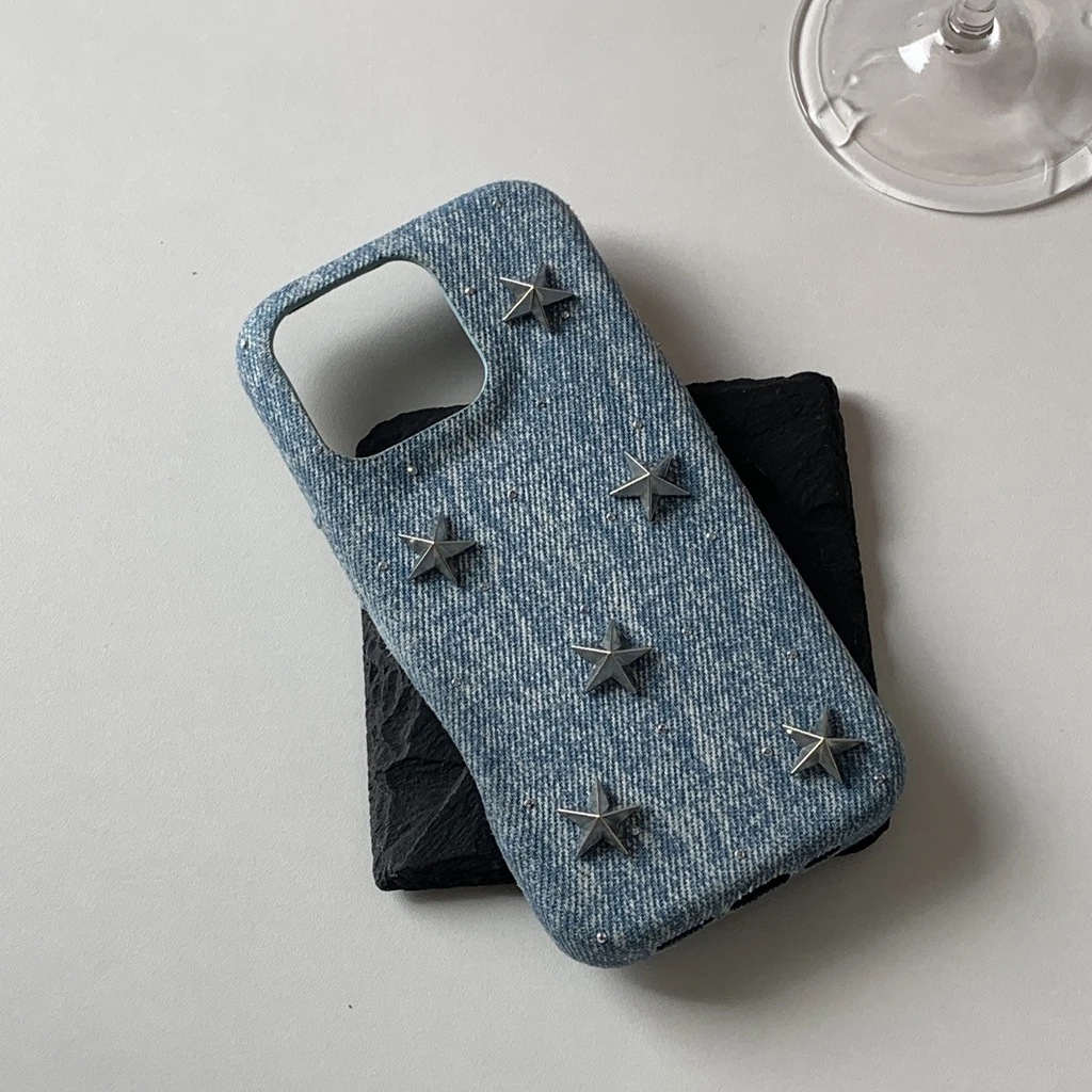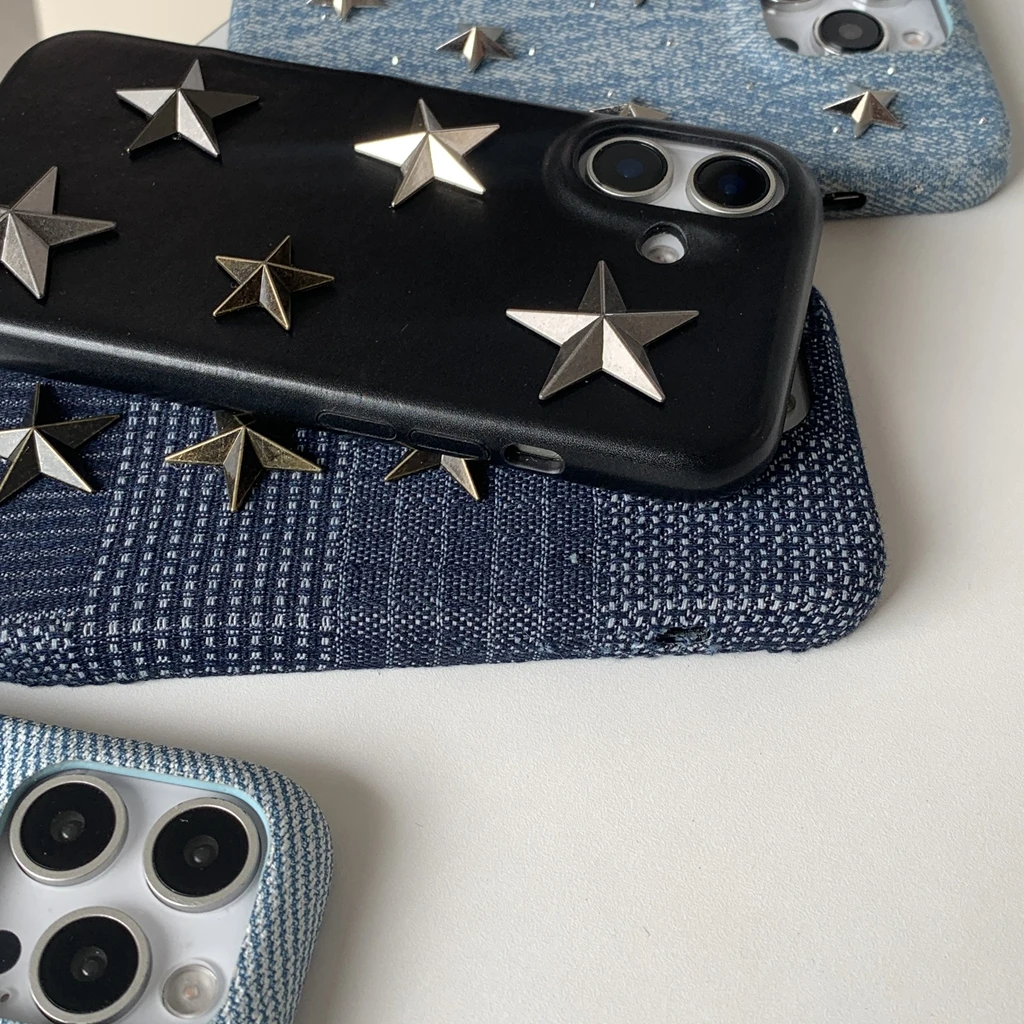 【立体スタースタッズ】デニム風 スマホケース|iPhone対応 #250731