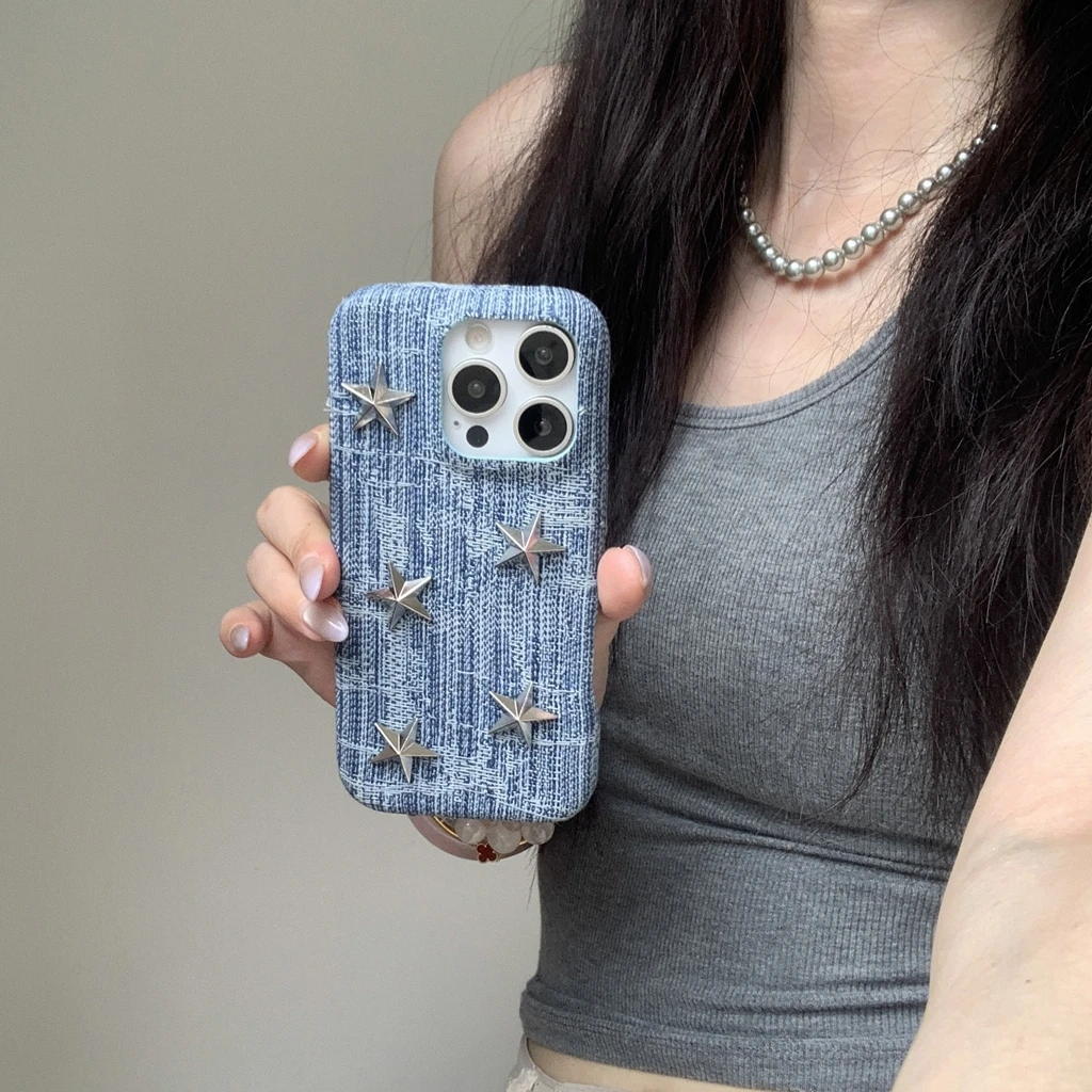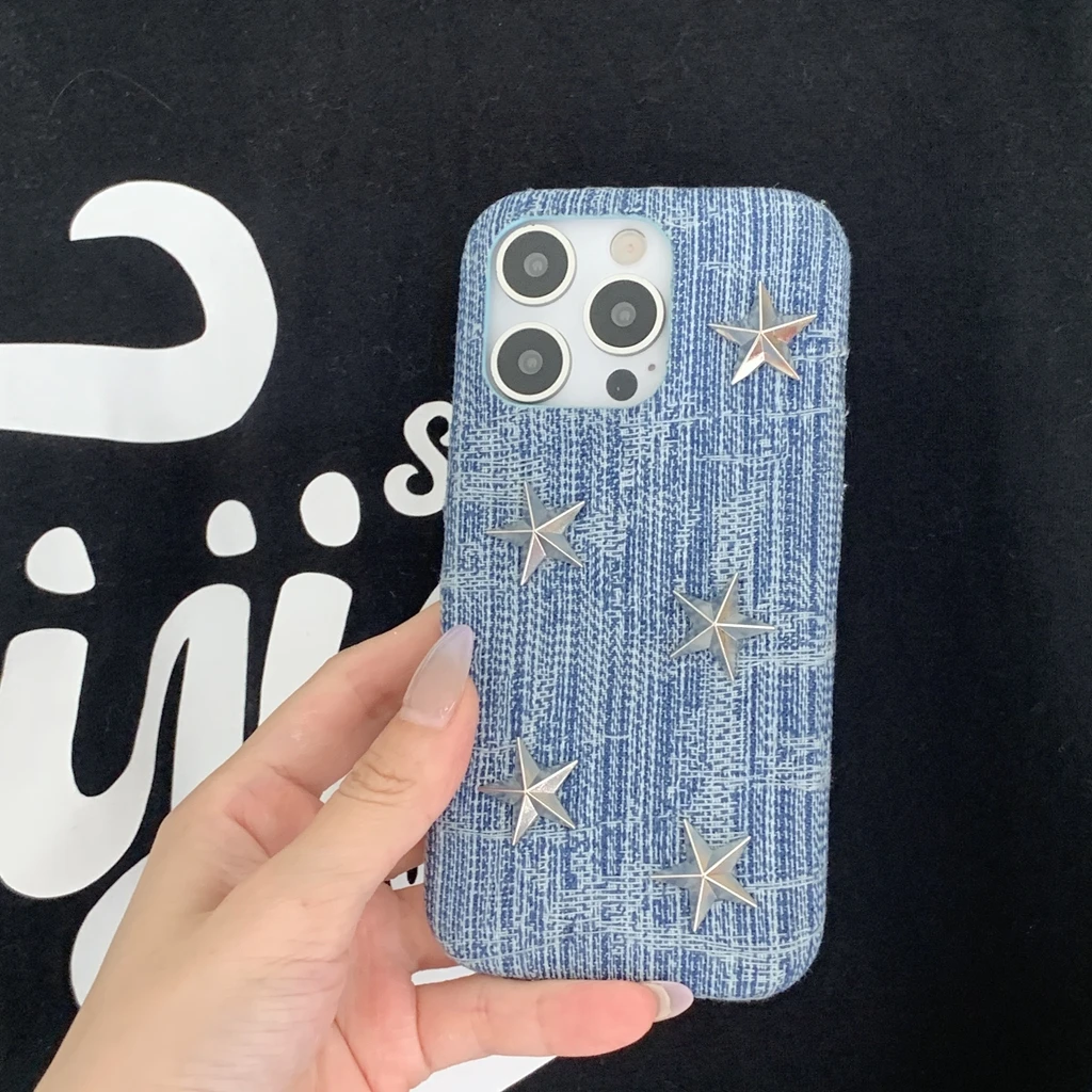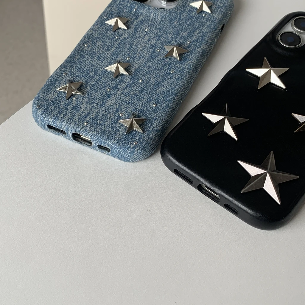 【立体スタースタッズ】デニム風 スマホケース|iPhone対応 #250731