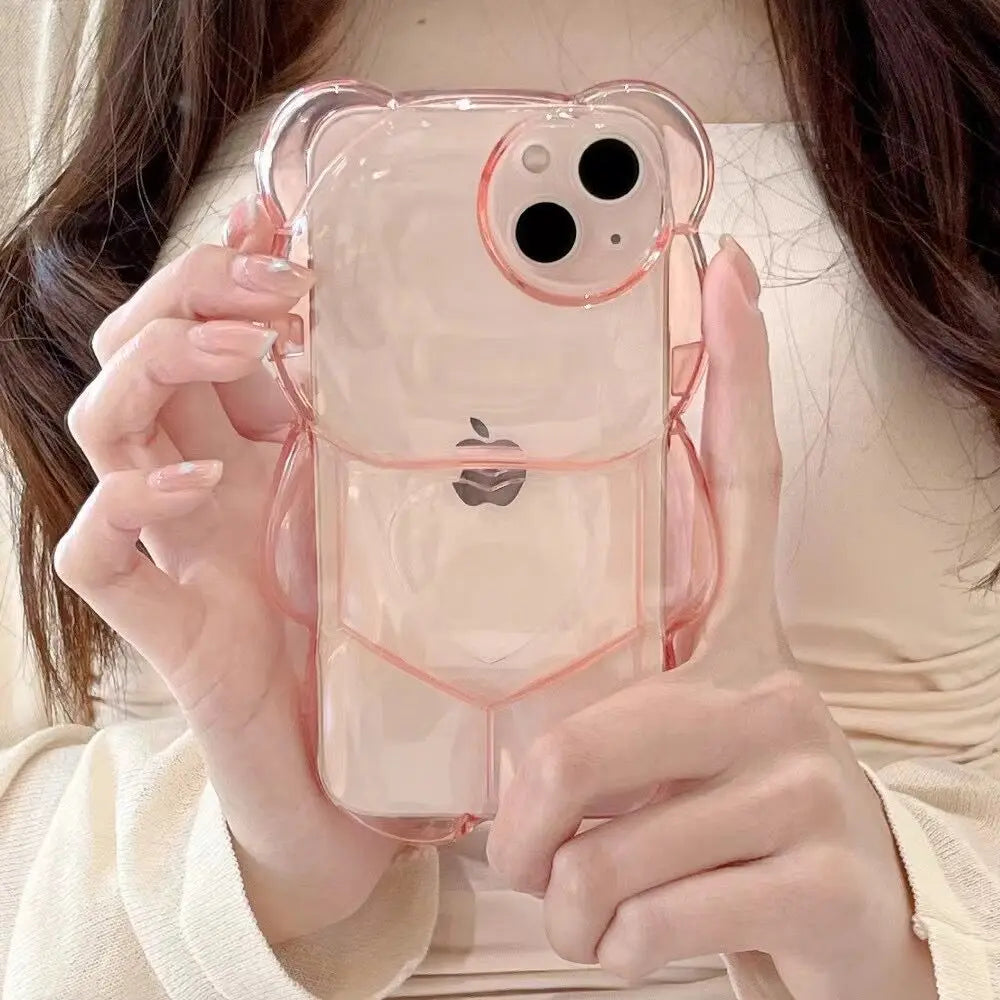 【透明くまちゃん】立体ベアシリコンケース|iPhone対応 #250707