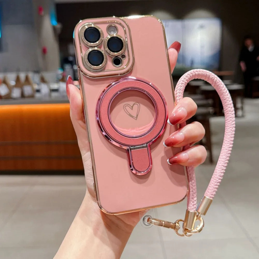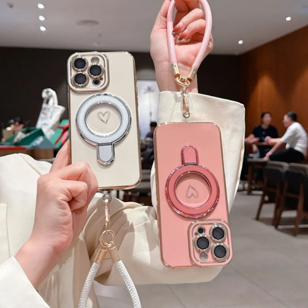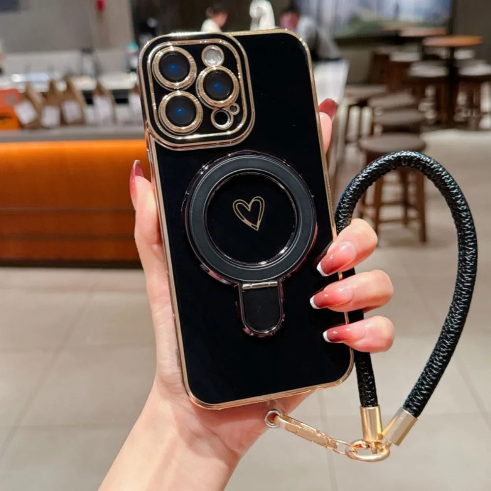 ワンポイントハート リング&ストラップ付き iPhoneケース #231220