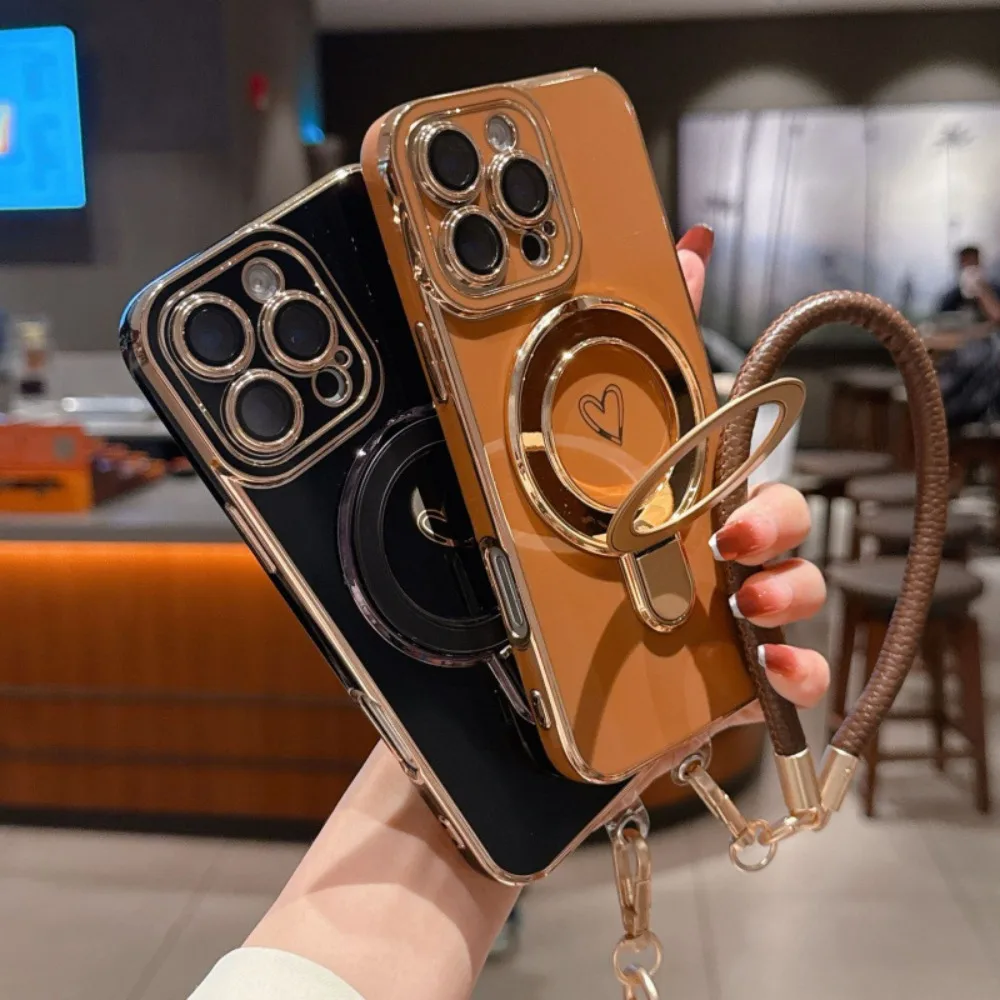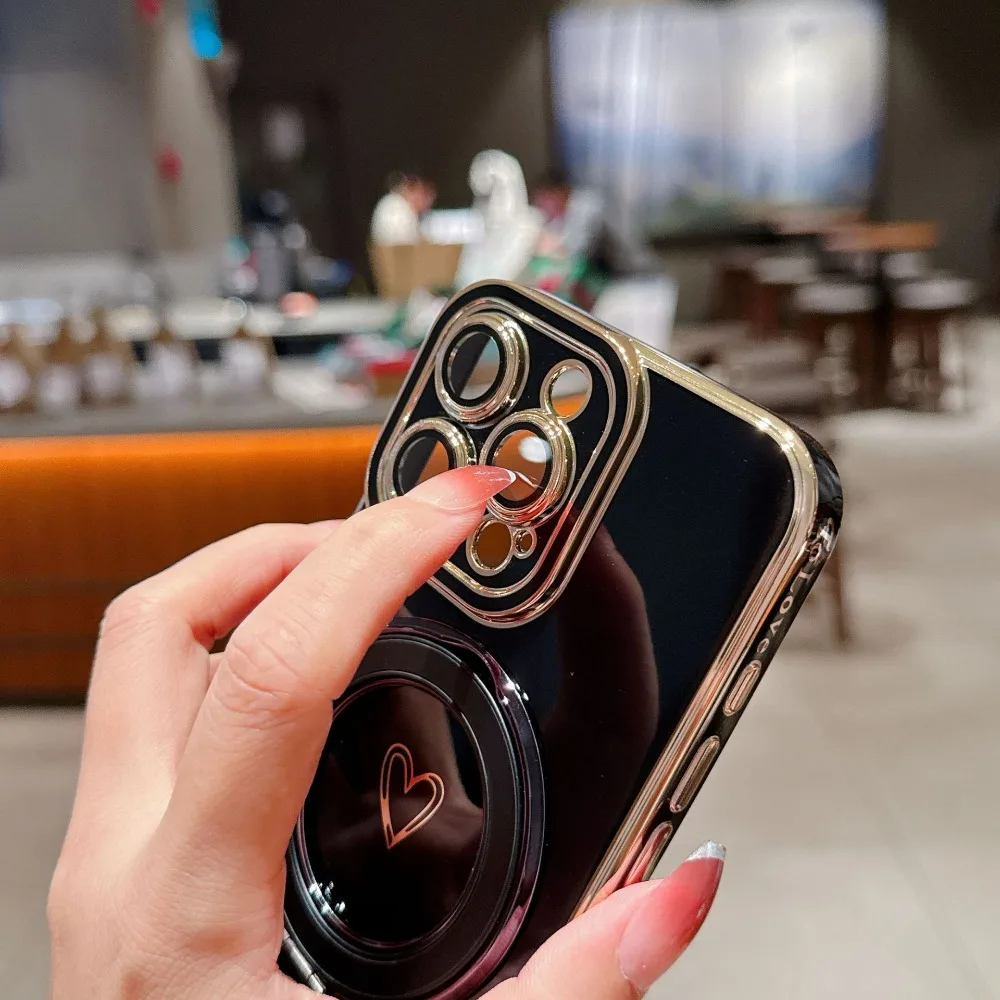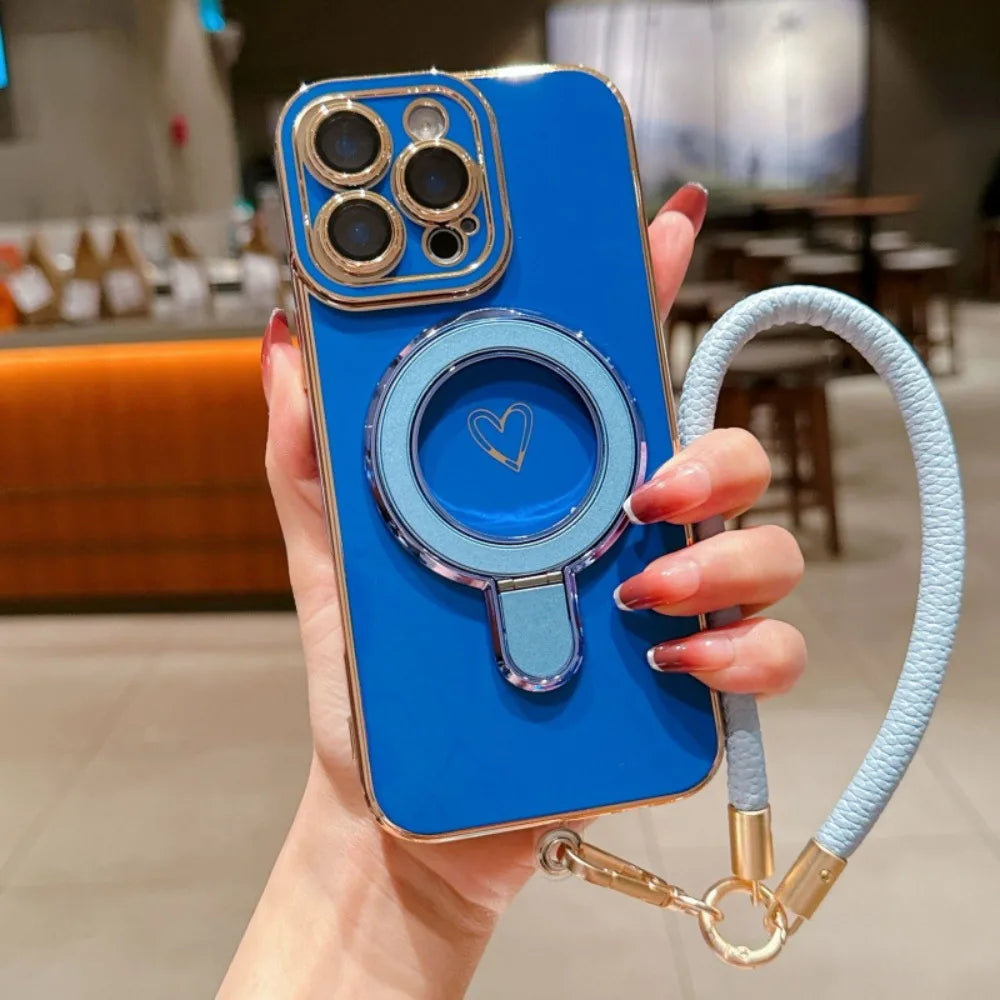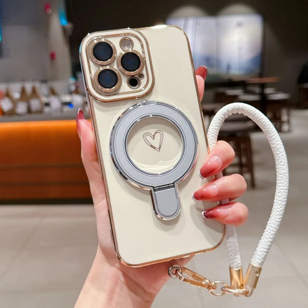 ワンポイントハート リング&ストラップ付き iPhoneケース #231220