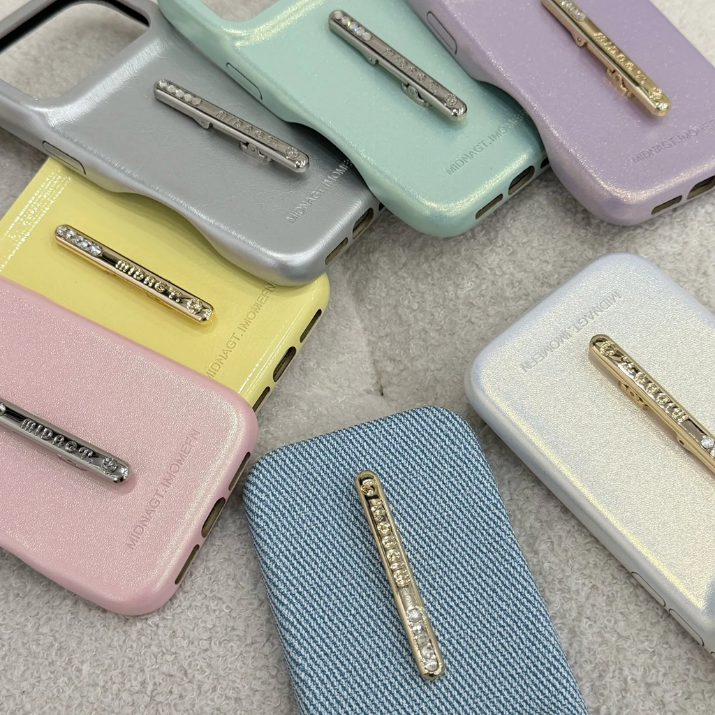 ビジューライン スリムグリップ iPhoneケース|レザー調・高級感デザイン #231225