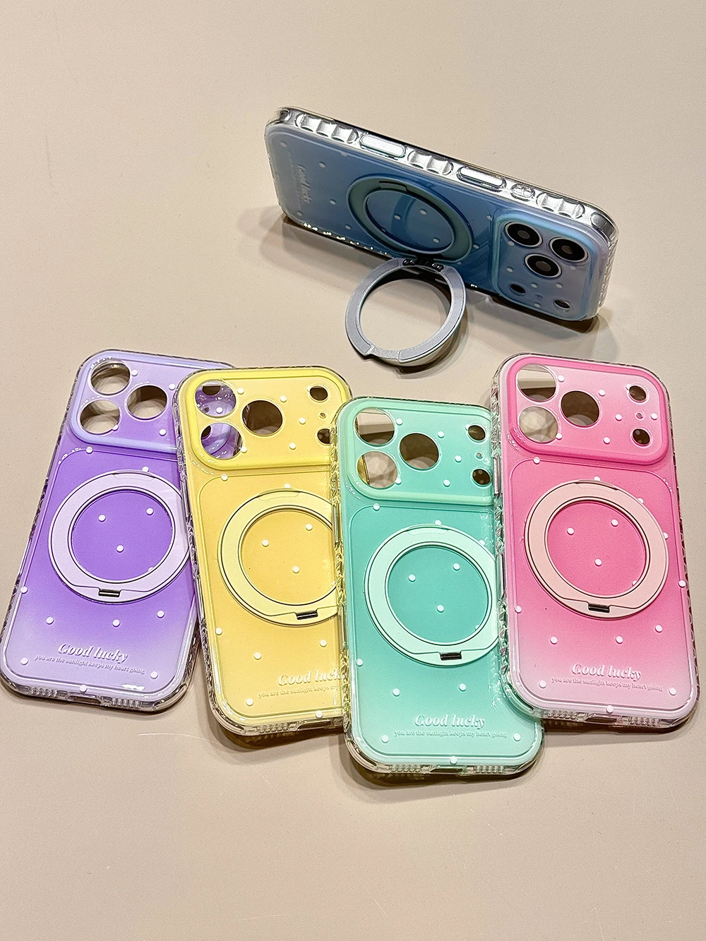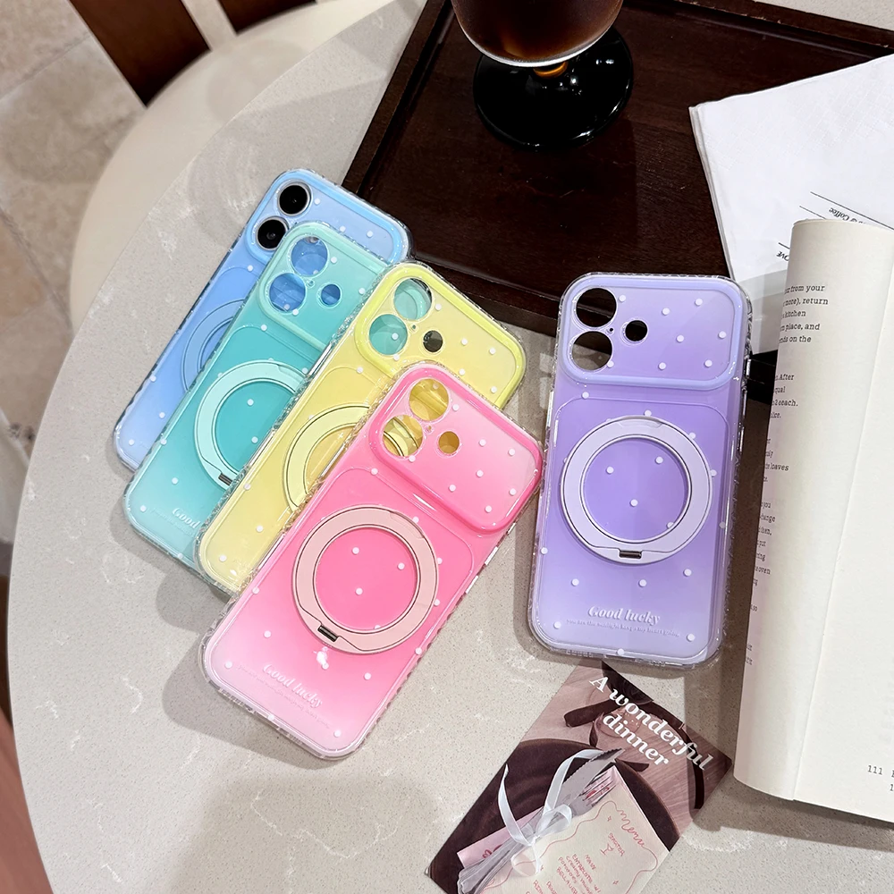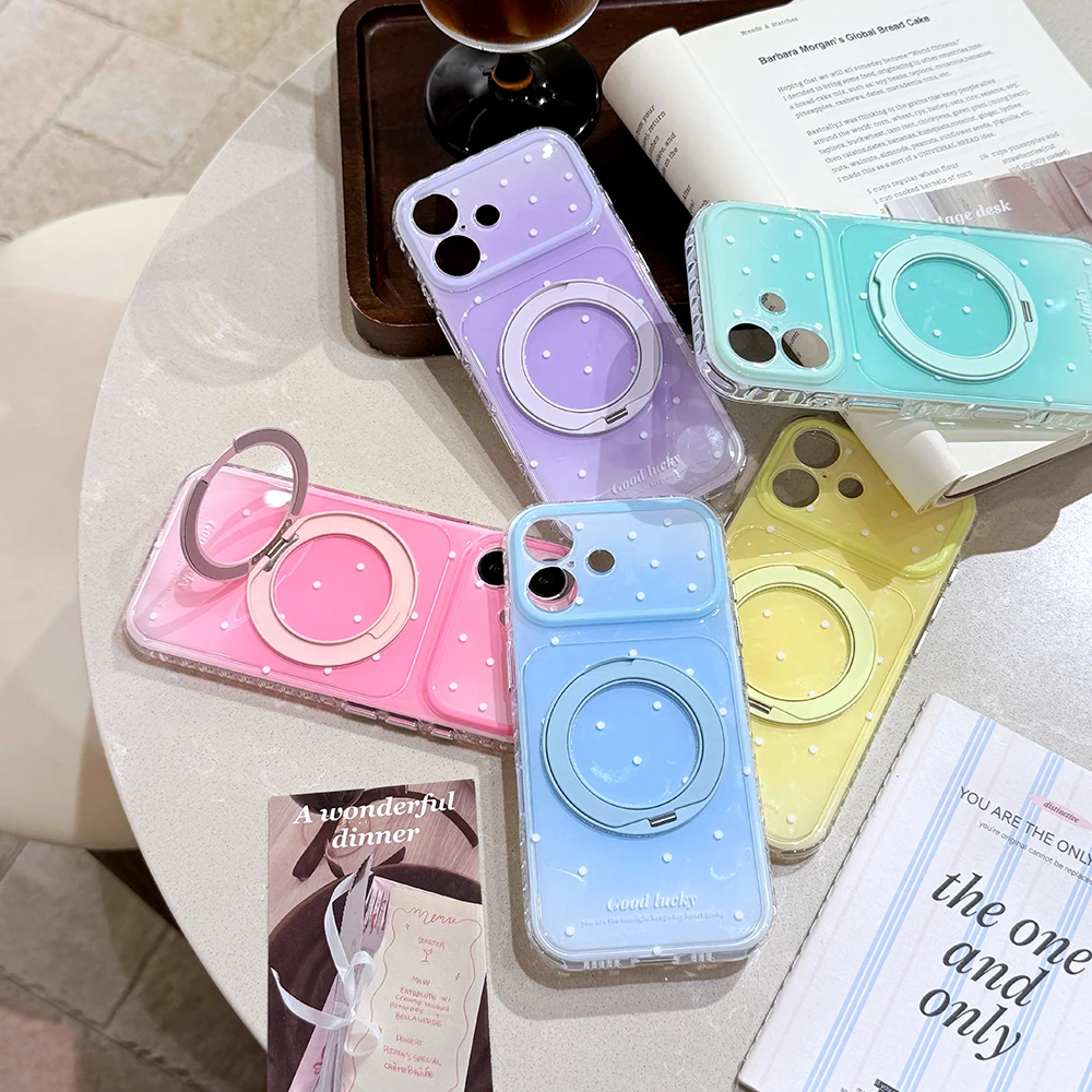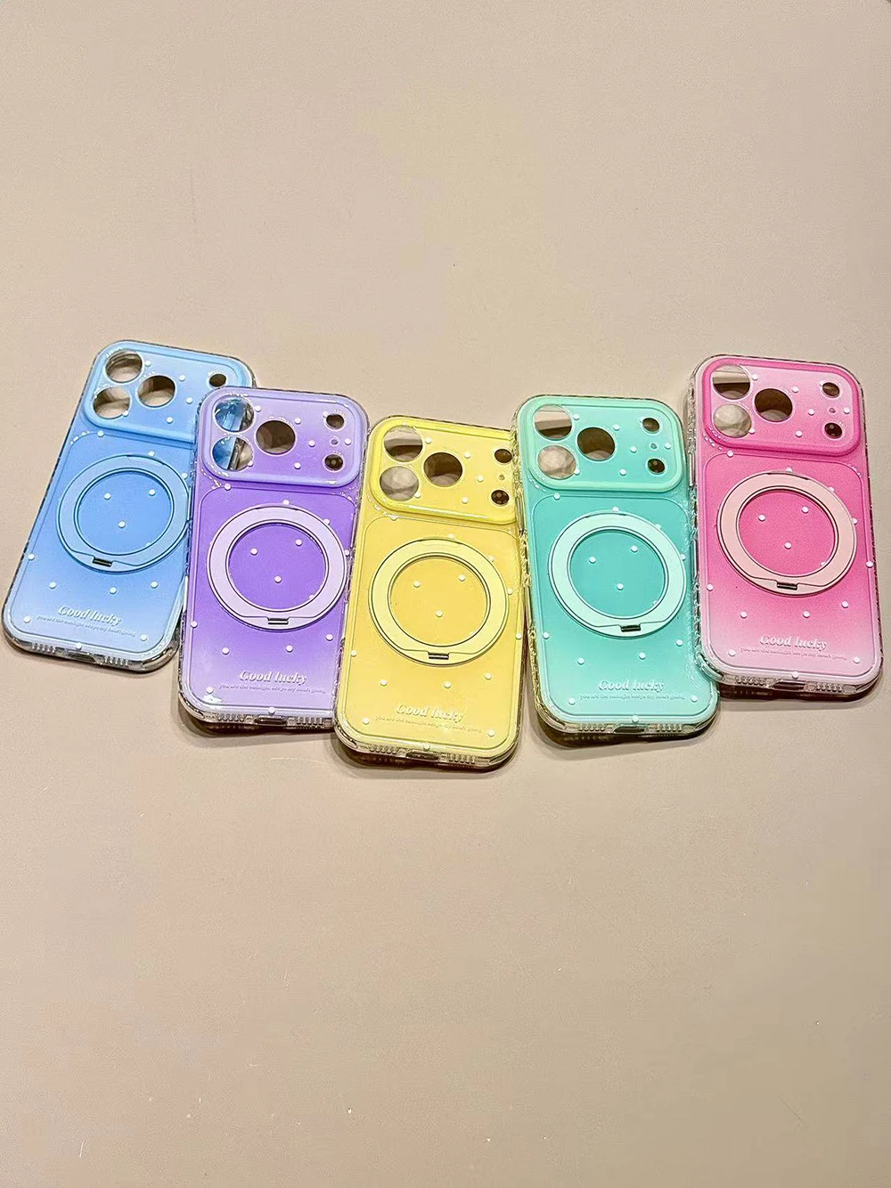 パステルグラデ 水玉 ドット 折りたたみリング付き| iPhoneケース #231231