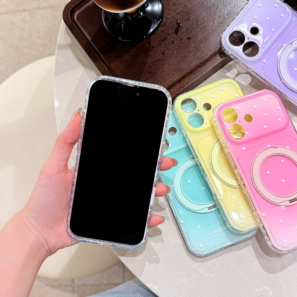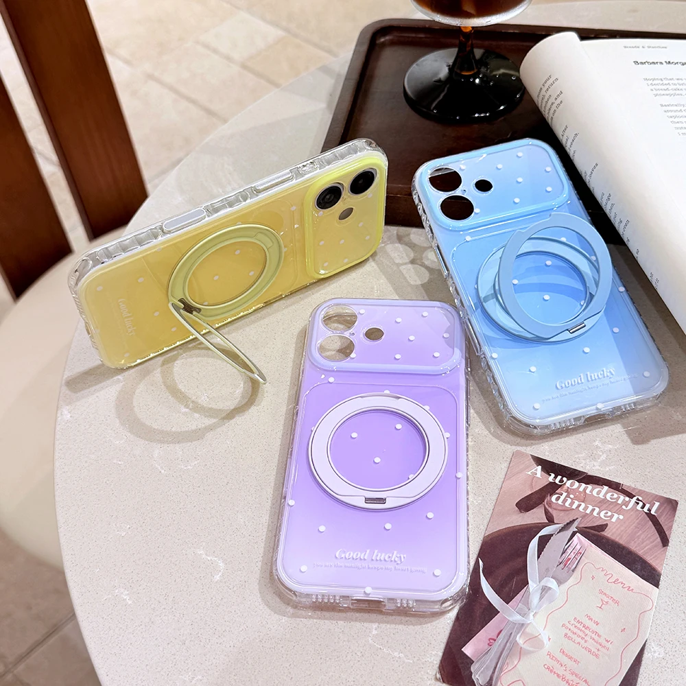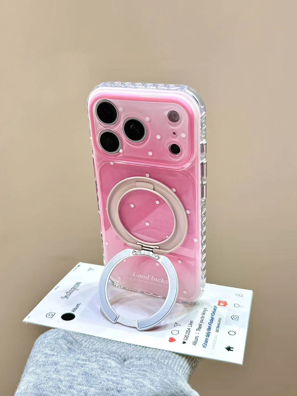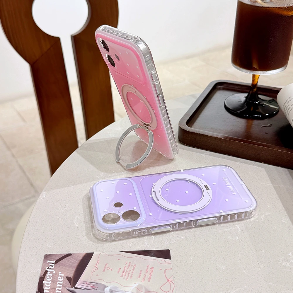 パステルグラデ 水玉 ドット 折りたたみリング付き| iPhoneケース #231231