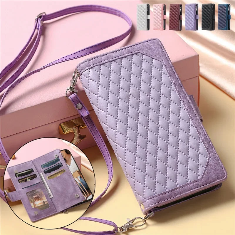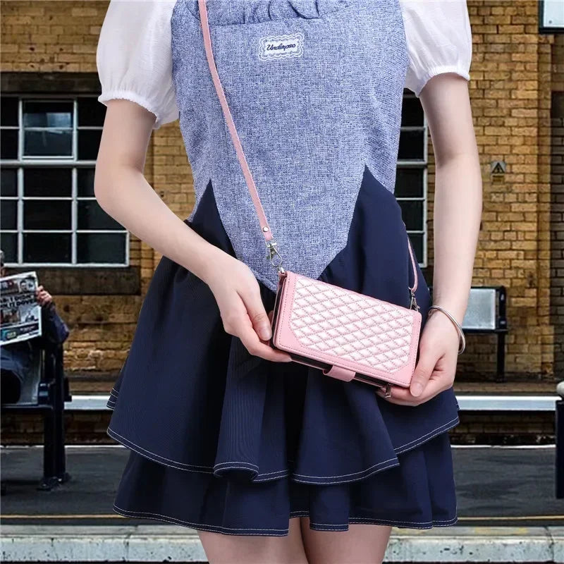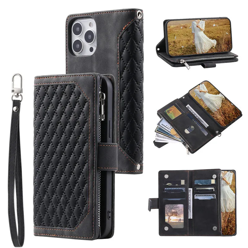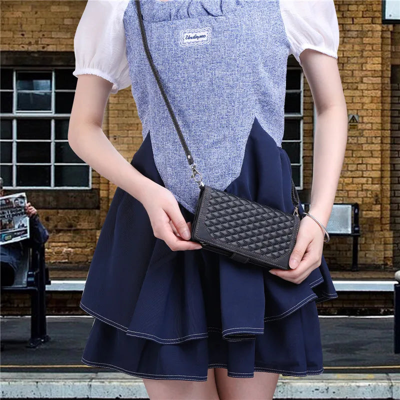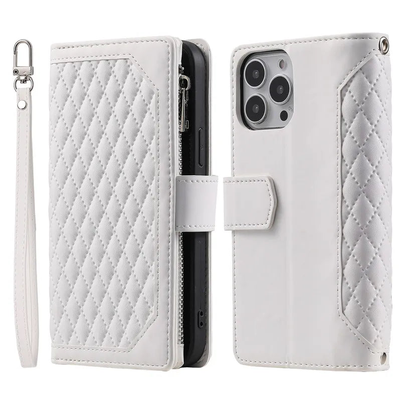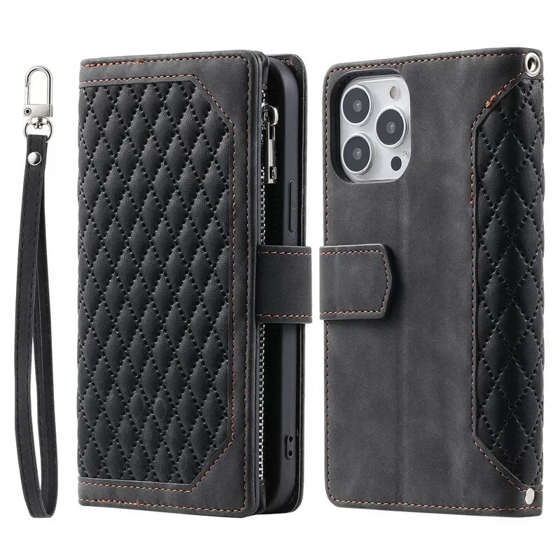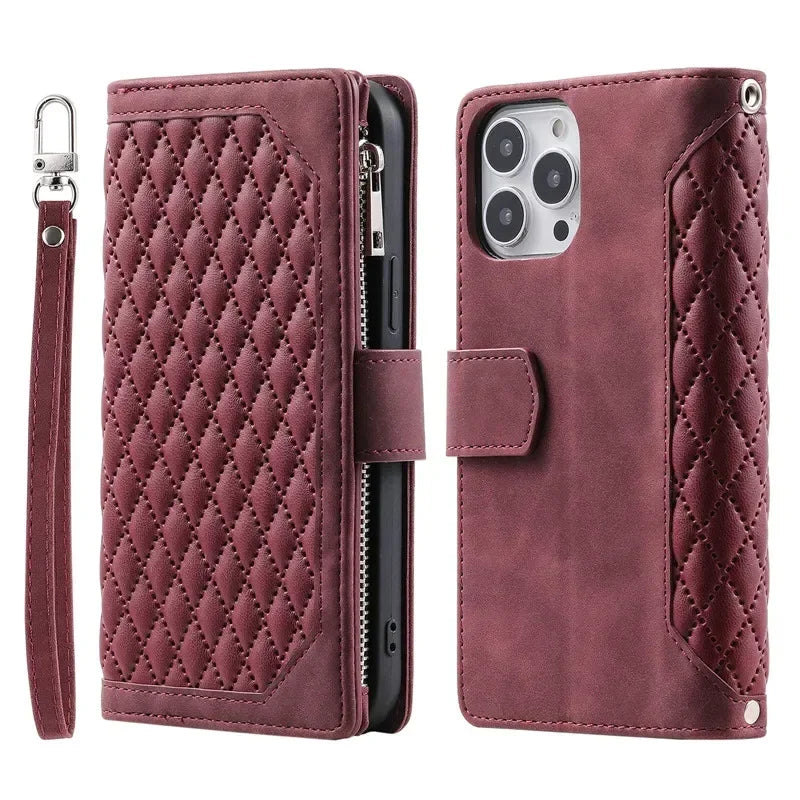 【ブックスタイル】キルティング レザー 手帳型 ウォレット iPhoneケース|ショルダーストラップ付き #240127