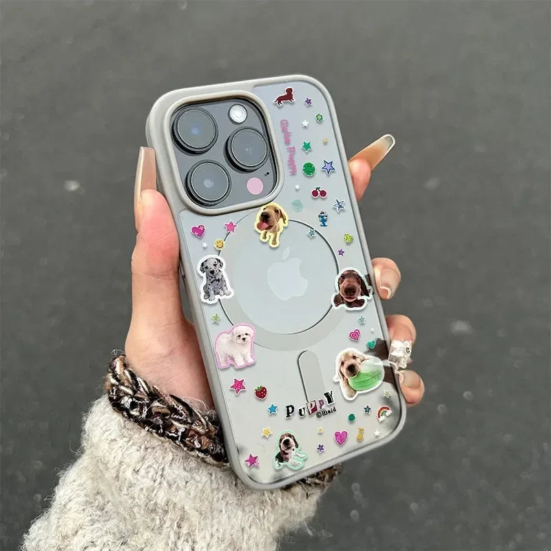 パピー ステッカー 子犬 クリア Magnet内蔵 iPhoneケース #240223
