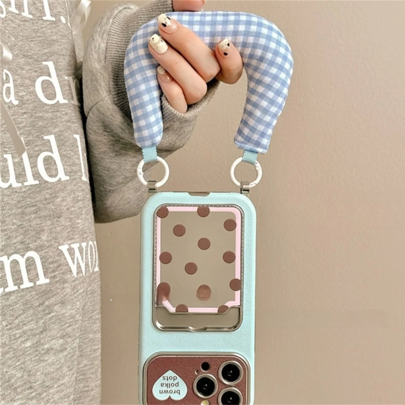 ギンガムストラップ付き ドットポケット iPhoneケース|カード収納・ソフトTPU #240228