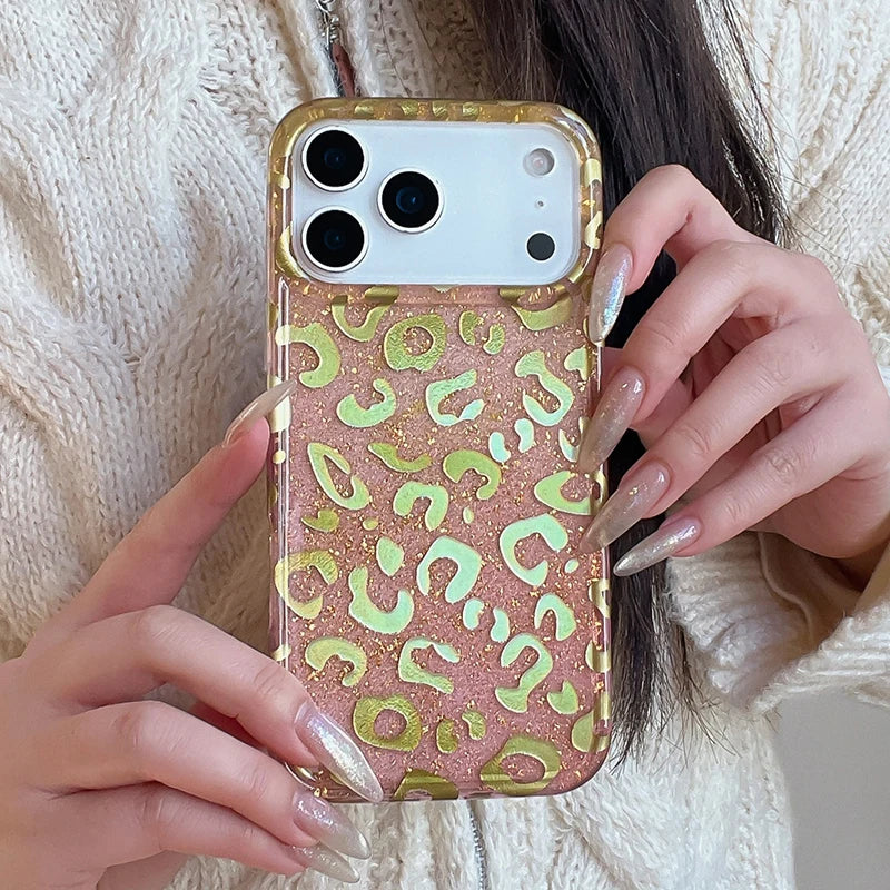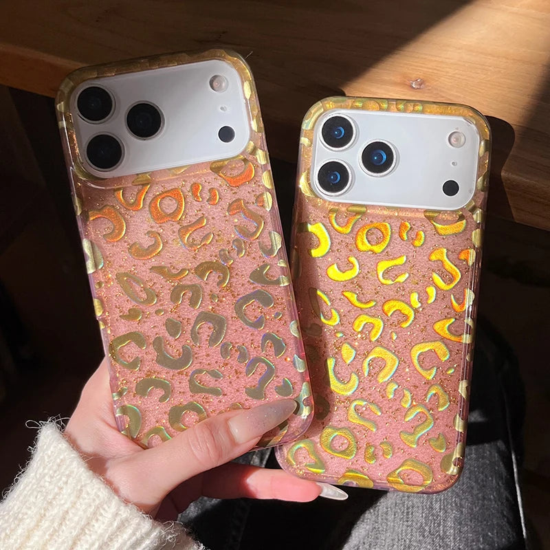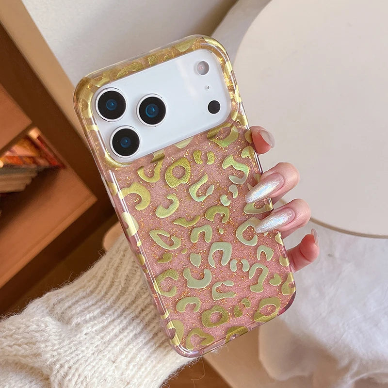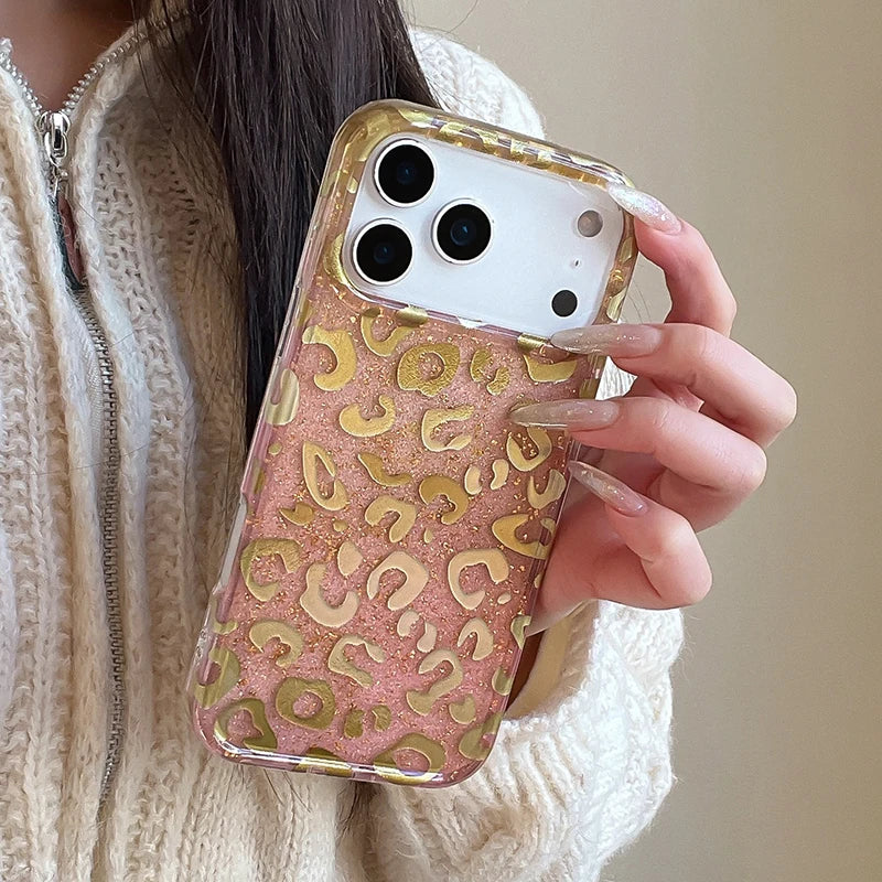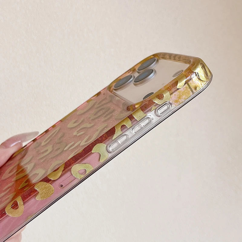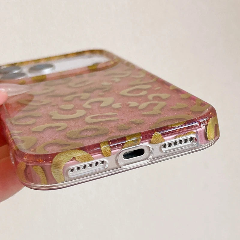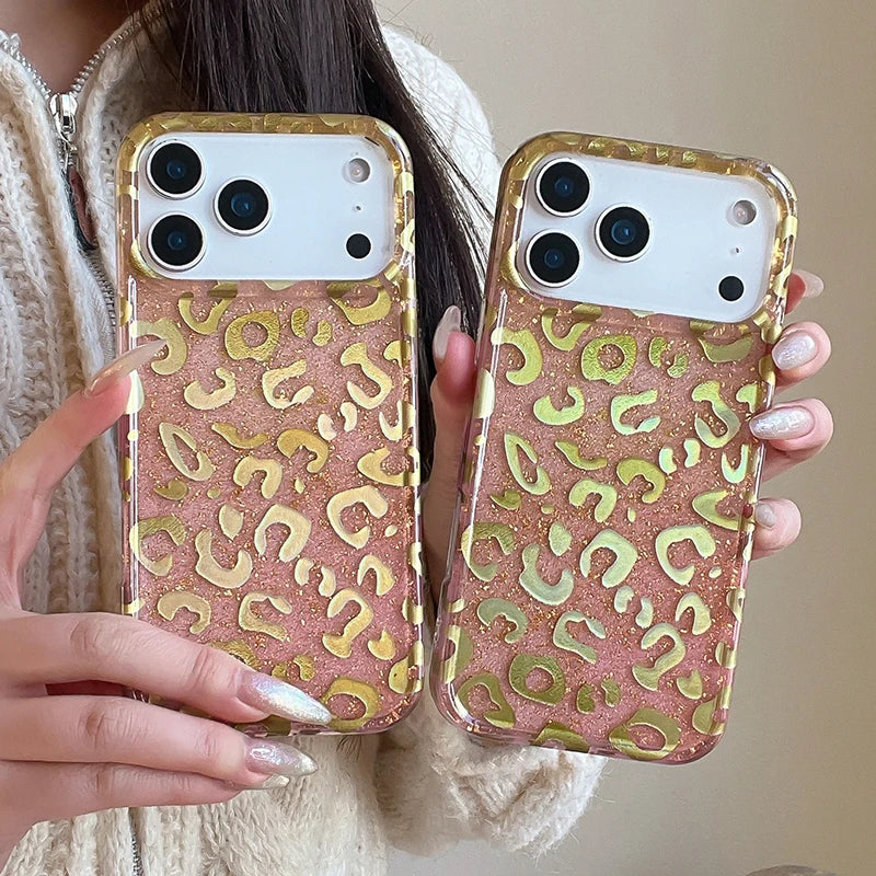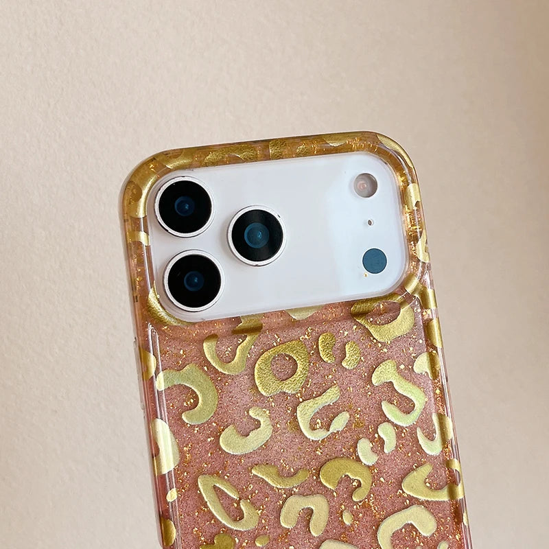 透明感のあるクリアベースに、ゴールドカラーのレオパード柄をあしらった上品なiPhoneケース。