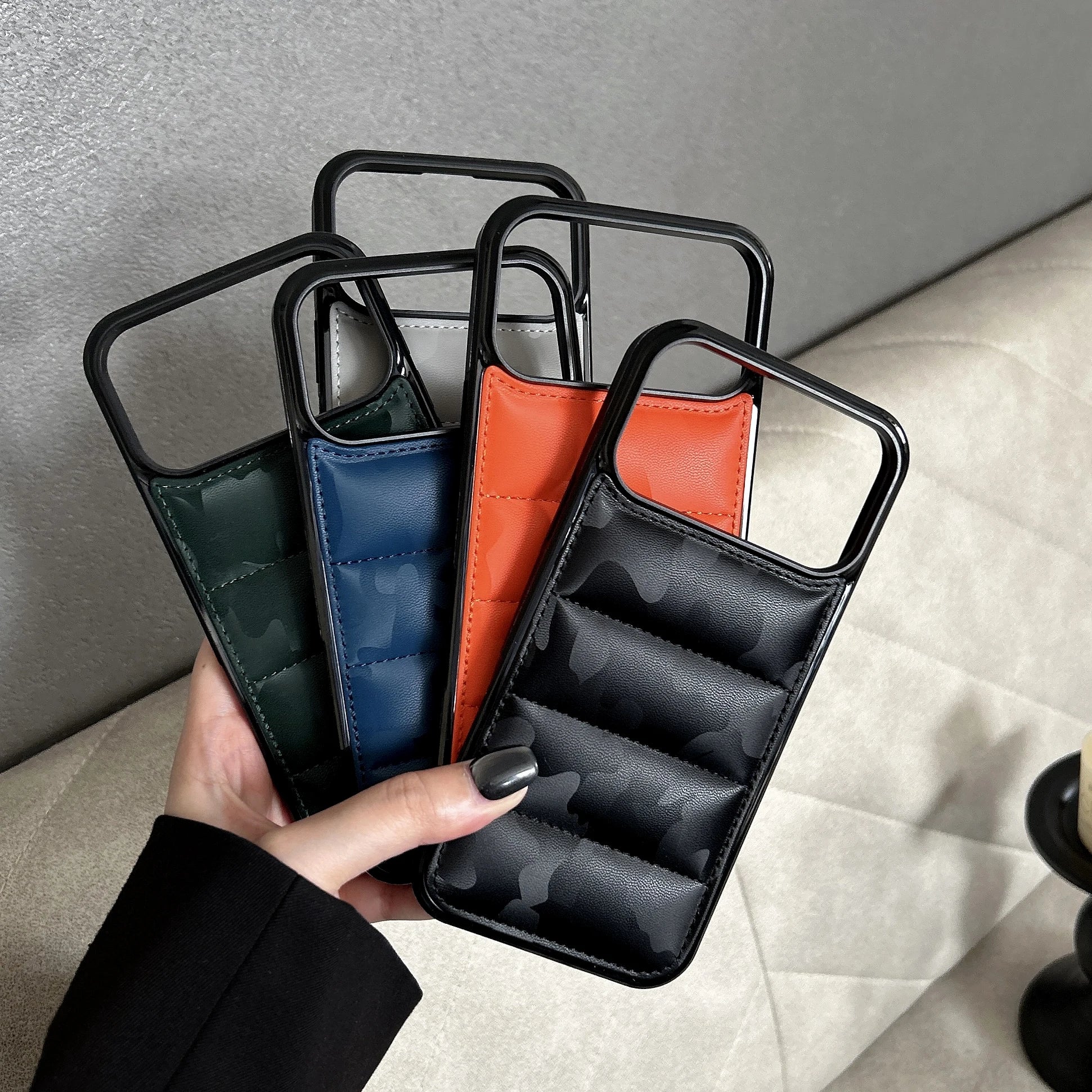 カモフラ柄 ダウンジャケット風 キルティング iPhoneケース #240308