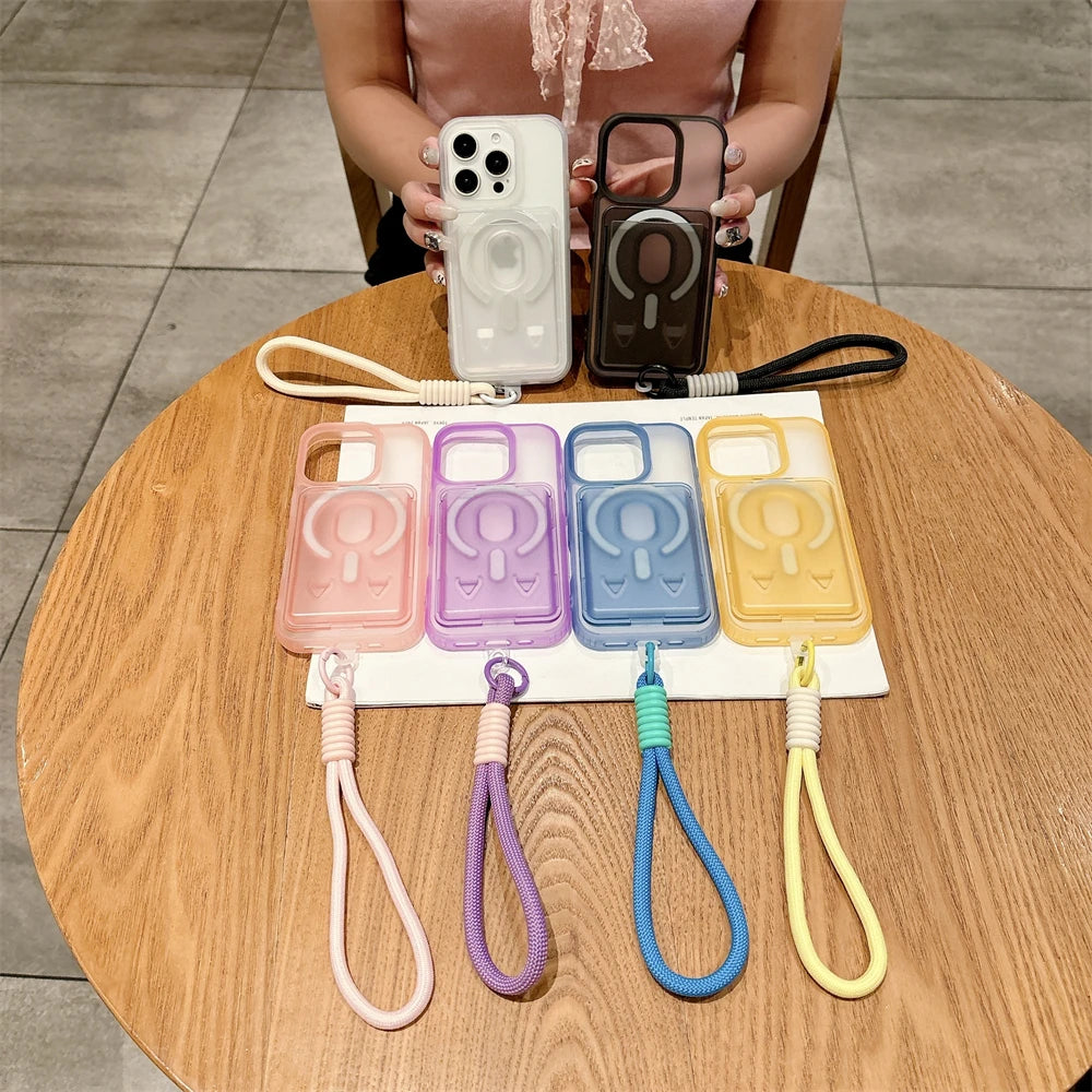 クリアストラップ カード収納 iPhoneケース|カラーループ付き #240313