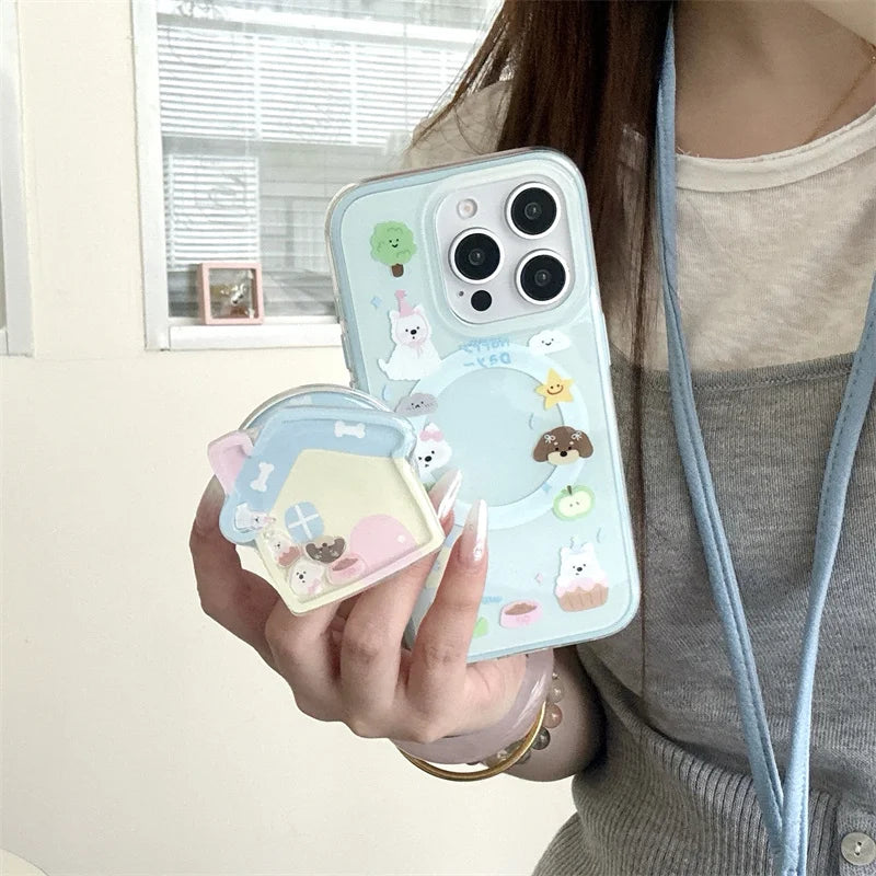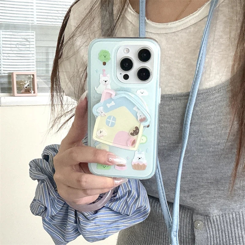 ドッグハウス 立体 グリップ 犬柄デザイン iPhoneケース #240318
