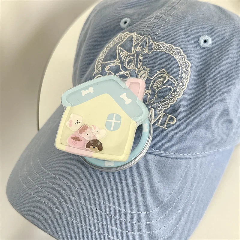 背面には立体的なハウスモチーフをあしらい、まるで犬たちのおうちを覗いているような遊び心のあるデザインに仕上げました。