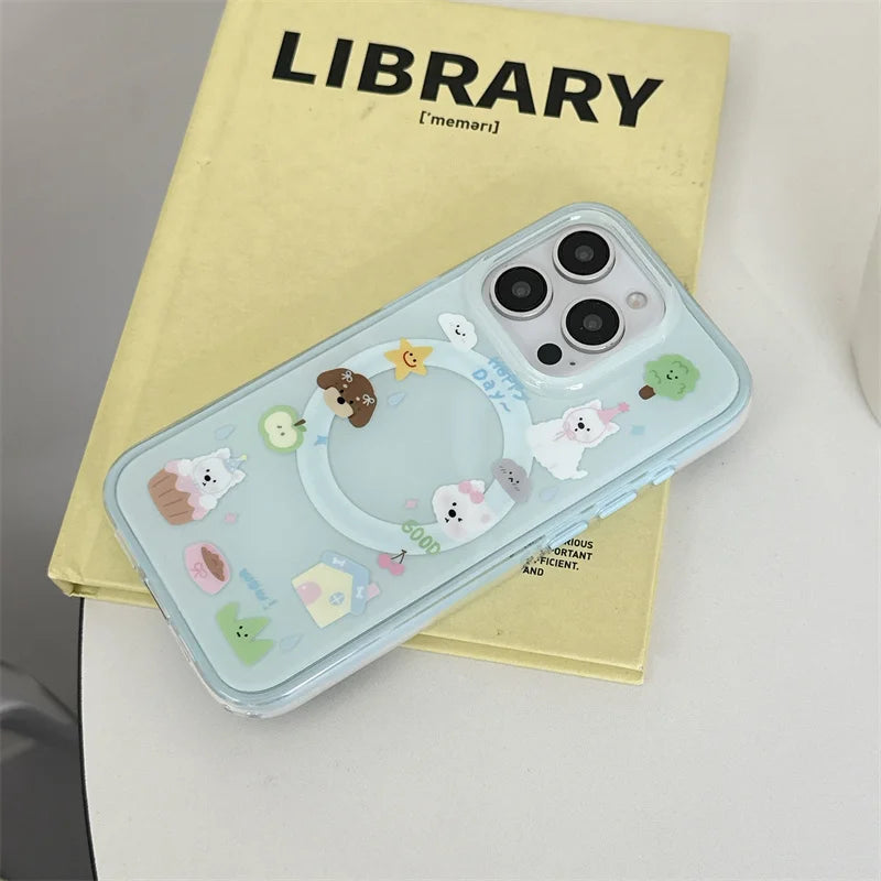 たくさんのワンちゃんモチーフを散りばめた、見ているだけで癒されるiPhoneケース。