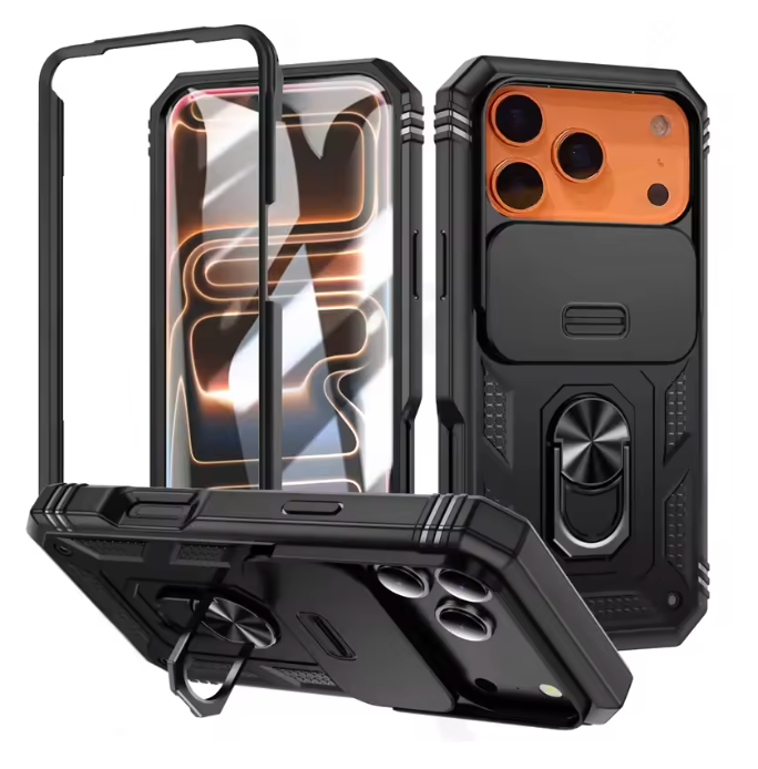 360°プロテクト リングスタンド iPhoneケース|カメラ保護スライド・耐衝撃・PC×TPU構造 #240324