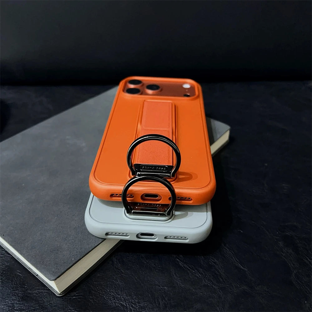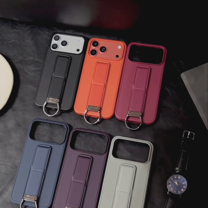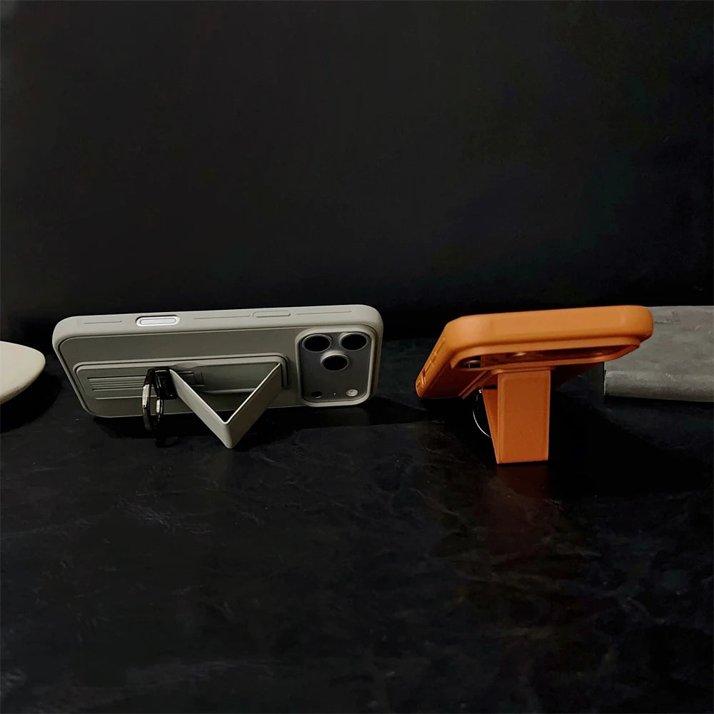スタンド一体型 レザー調 折りたたみスタンド iPhoneケース|シンプルデザイン#240329