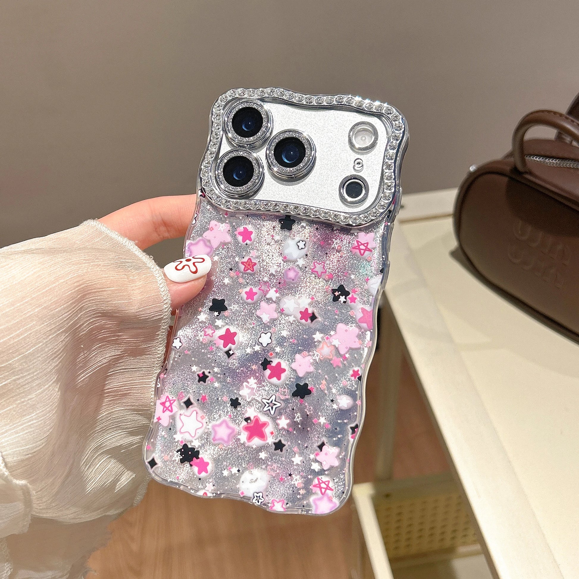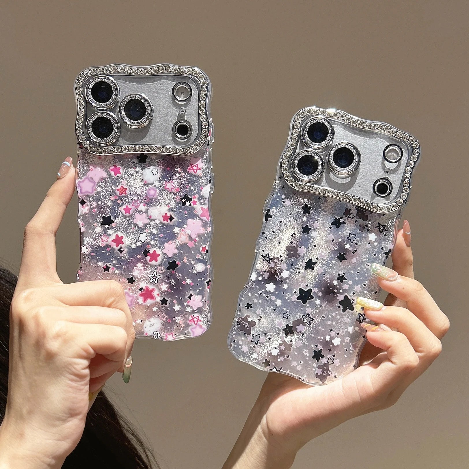 ウェーブフレーム iPhoneケース|スターグリッター・キラキラ デザイン #240410