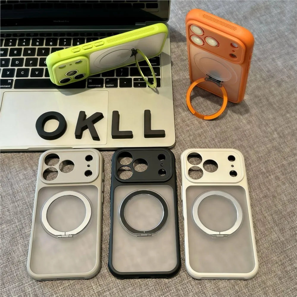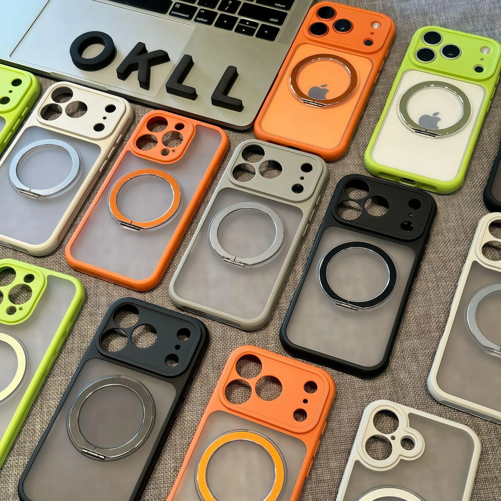 マットカラー iPhoneケース|ビビッド配色・リング一体型・耐衝撃デザイン #240412