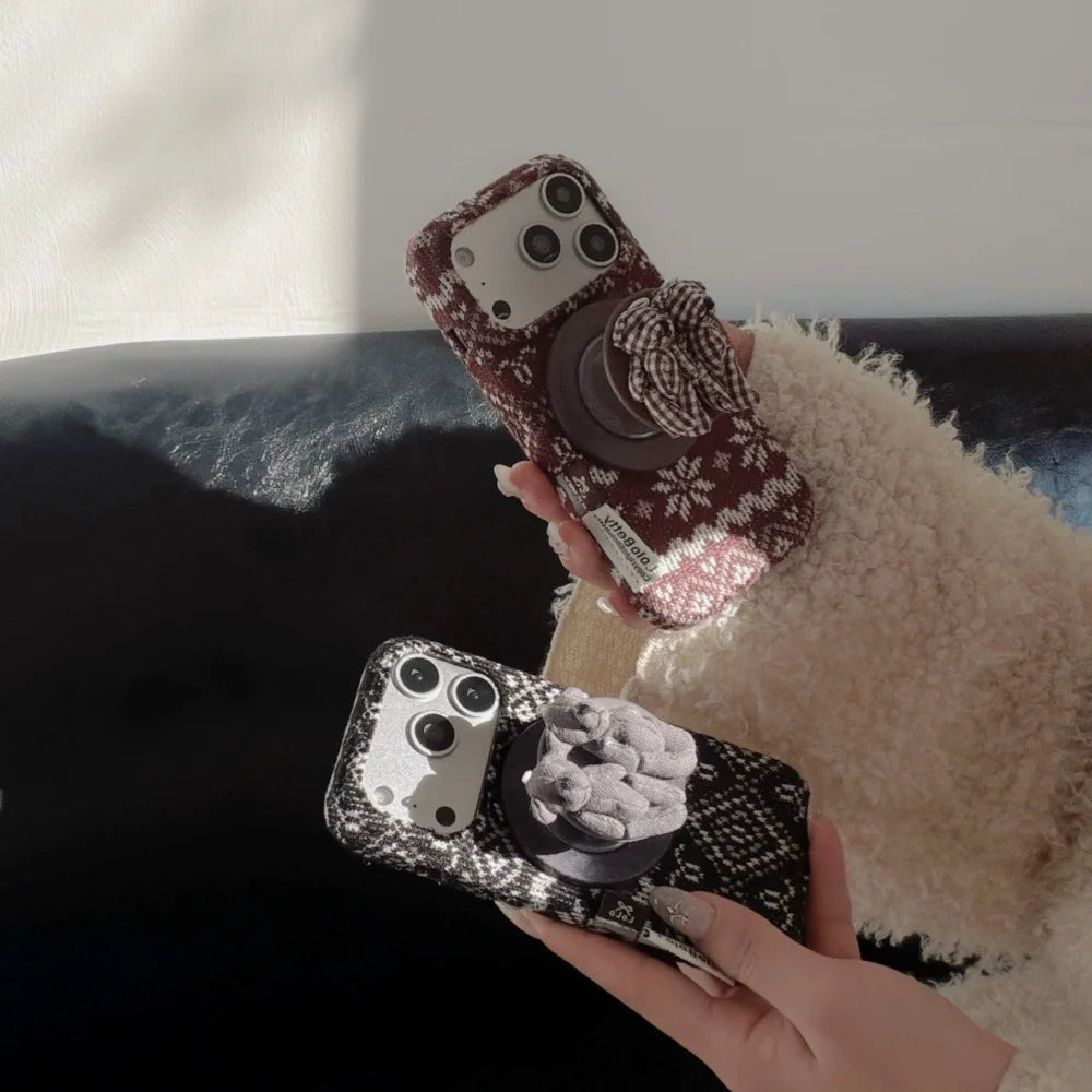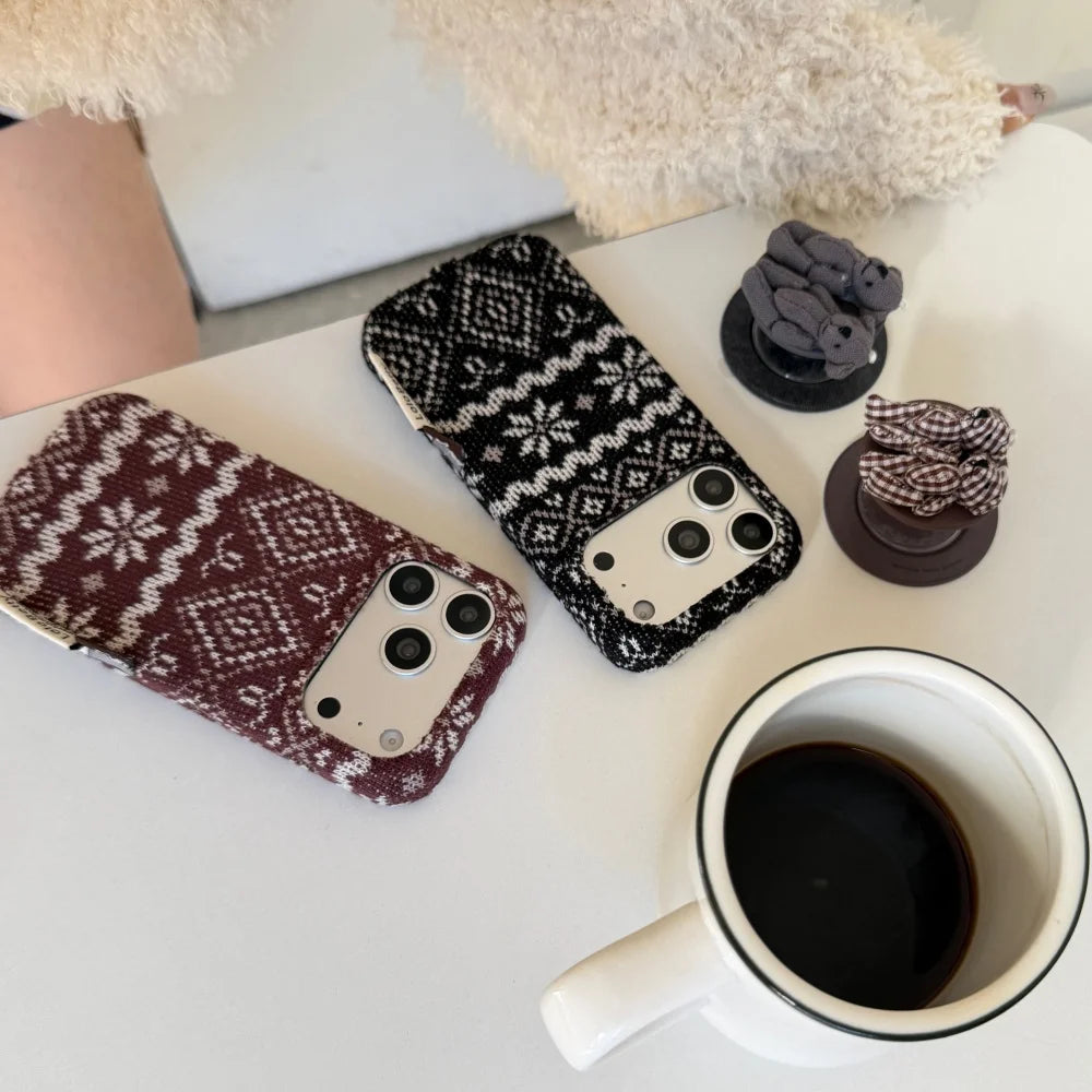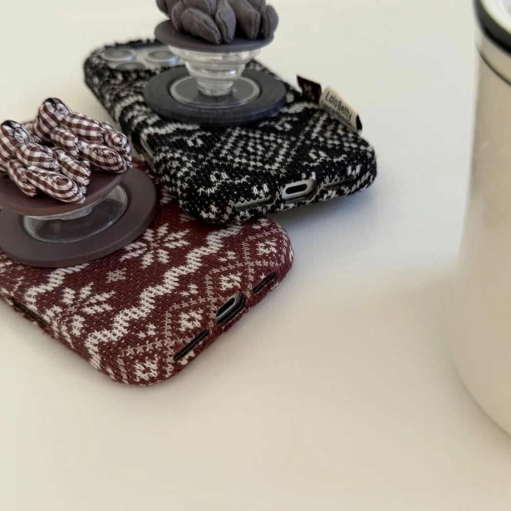 クラシックニット ベアグリップ iPhoneケース|秋冬ツイード風デザイン #240416
